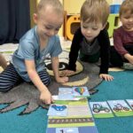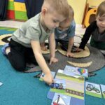 W tym tygodniu Jagódki poznawały sposoby komunikowania się i różne środki transportu. Dzieci dowiedziały się, jak ludzie podróżują z jednego miejsca do drugiego. Na zakończenie zajęć wykonały własne sygnalizatory świetlne i utrwaliły znaczenie kolorów: czerwony – stój, żółty – przygotuj się, zielony – idź!