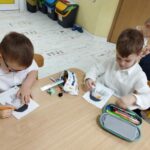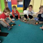 W tym tygodniu na zajęciach Jeżyki rozmawiały o komunikacji i przemieszczaniu się. Poznawały słownictwo związane z ruchem drogowym, pojazdami oraz sposobami poruszania się po mieście. Na zakończenie zajęć wykonały własne sygnalizatory świetlne, utrwalając przy tym kolory i zasady bezpiecznego przechodzenia przez ulicę.