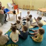 „Orzech tu orzech tam , a ja wszystkie orzechy znam…”takim wierszykiem Bumbelbee zapoznały się z wiewiórkami i ich przysmakiem czyli orzeszkami. Zabawa integrowała grupę, a usmiech cały czas gościł na ich twarzy.