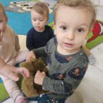 Rudy ogon,pięknie skacze, a orzeszki to jej smaczek…maluszki dziś stworzyły wiewiórki ze swoich rączek. Zabawa sprawiła im wiele radości ponieważ nasze skarby lubią zabawy sensoryczne.