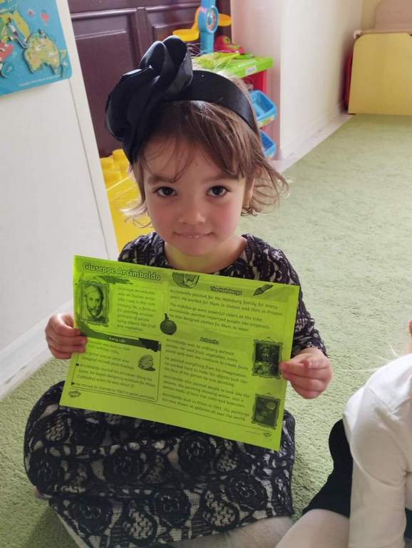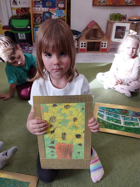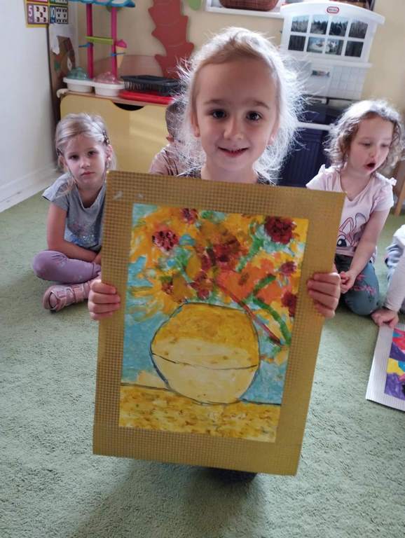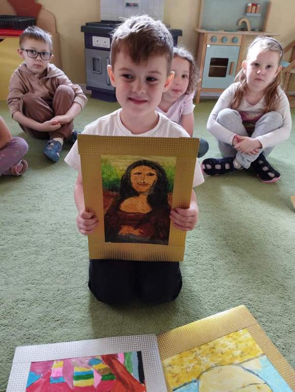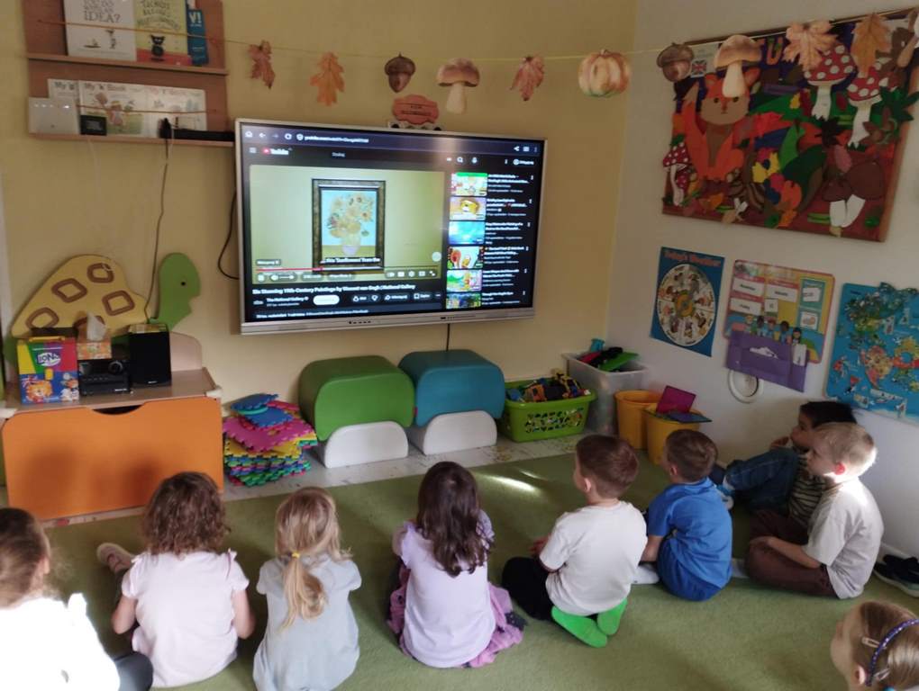 Kolejny tydzień listopada na zajęciach z języka angielskiego w grupie Tygrysków był tygodniem artystów malarzy. Z tej okazji wybraliśmy się do wirtualnej galerii sztuki i poznaliśmy nazwiska oraz dzieła słynnych malarzy, takich jak : Arcimboldo, Van Gogh, da Vinci, Monet i Picasso, po czym dzieci stworzyły swoje własne dzieła.