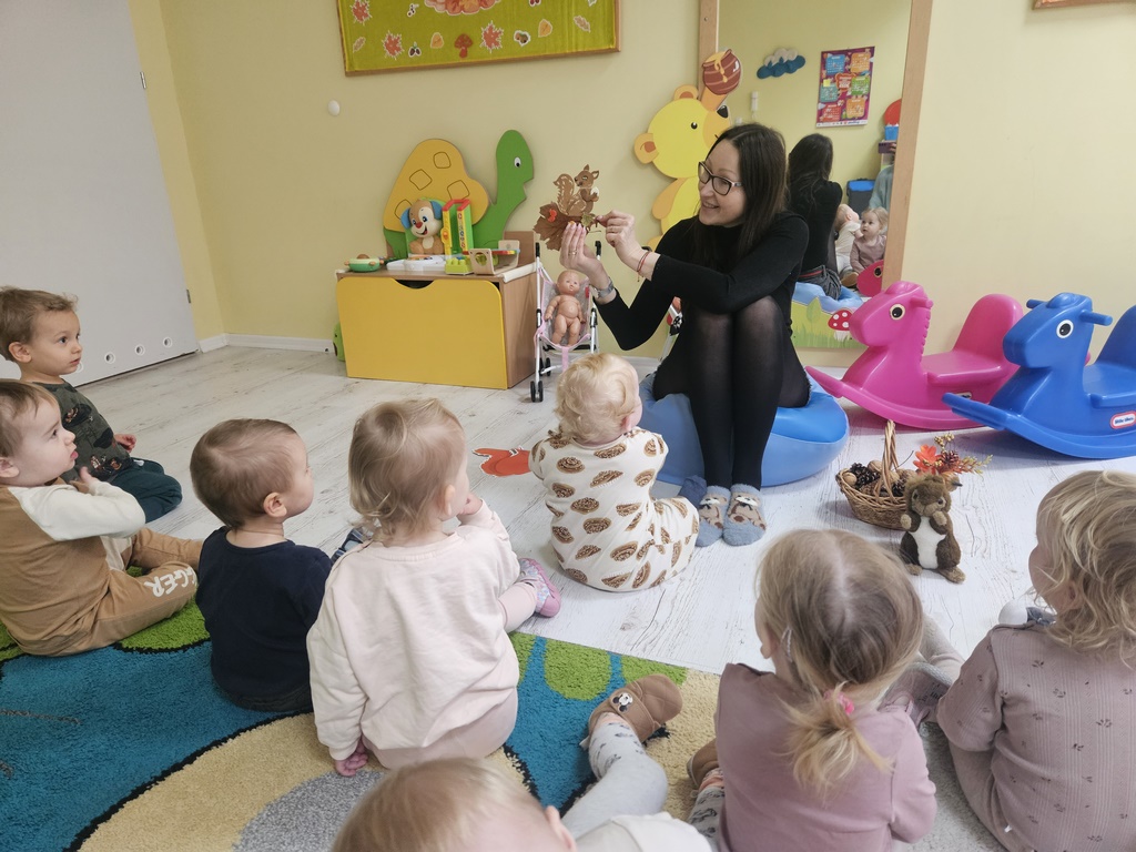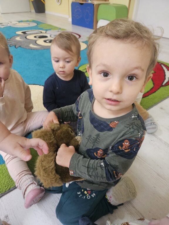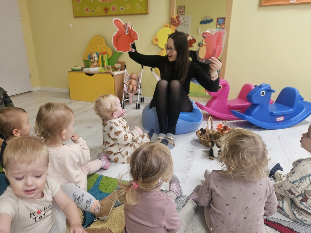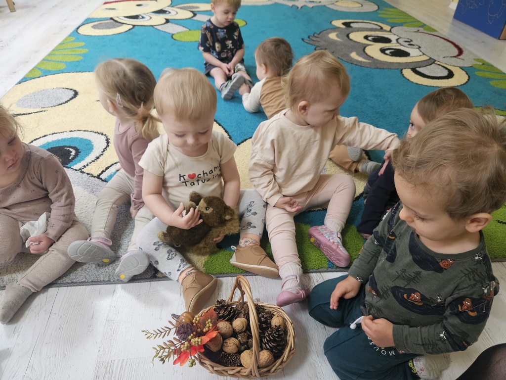„Orzech tu orzech tam , a ja wszystkie orzechy znam…”takim wierszykiem Bumbelbee zapoznały się z wiewiórkami i ich przysmakiem czyli orzeszkami. Zabawa integrowała grupę, a usmiech cały czas gościł na ich twarzy.