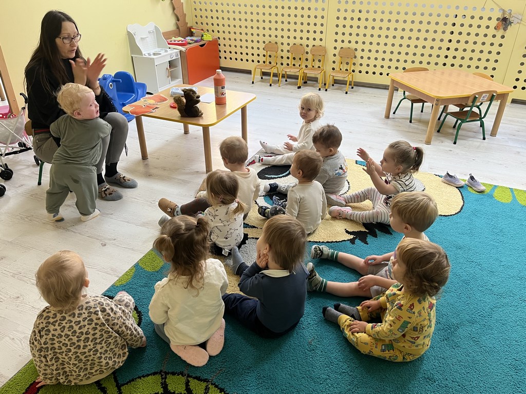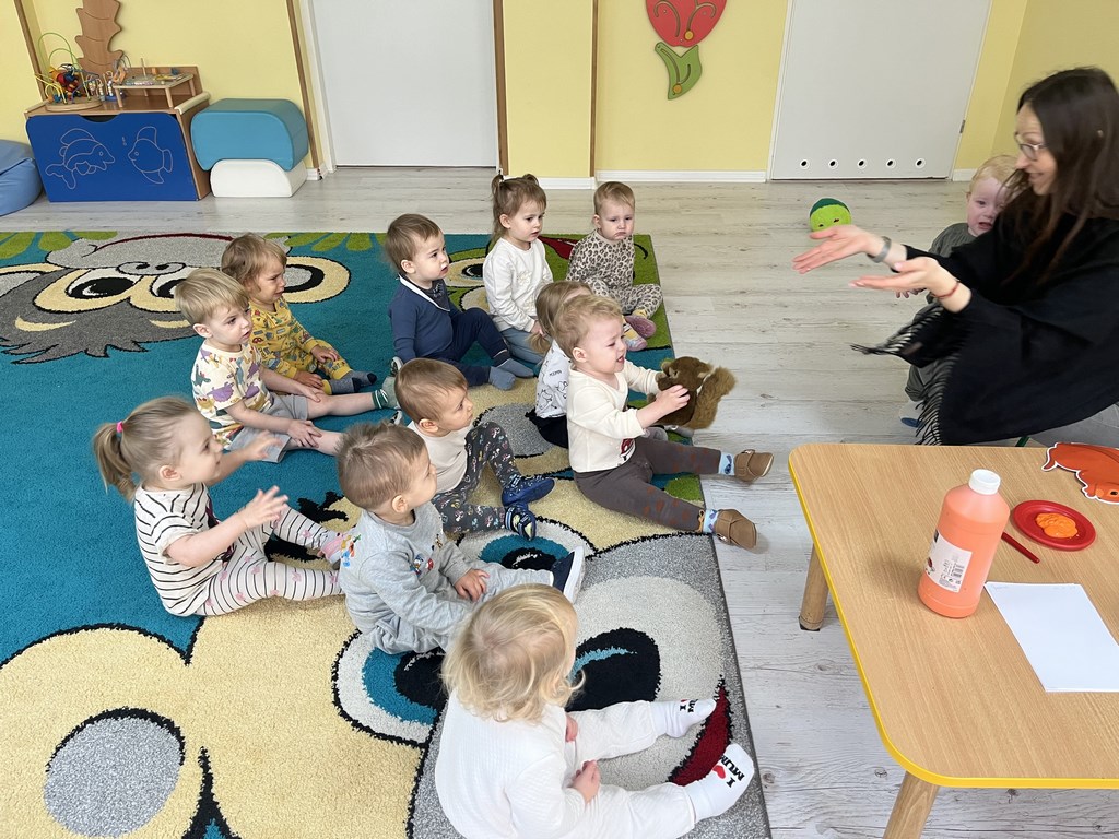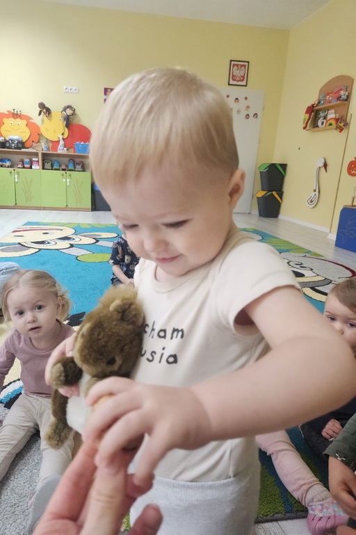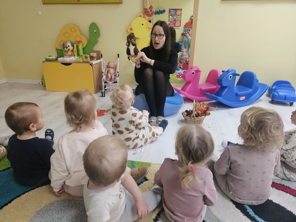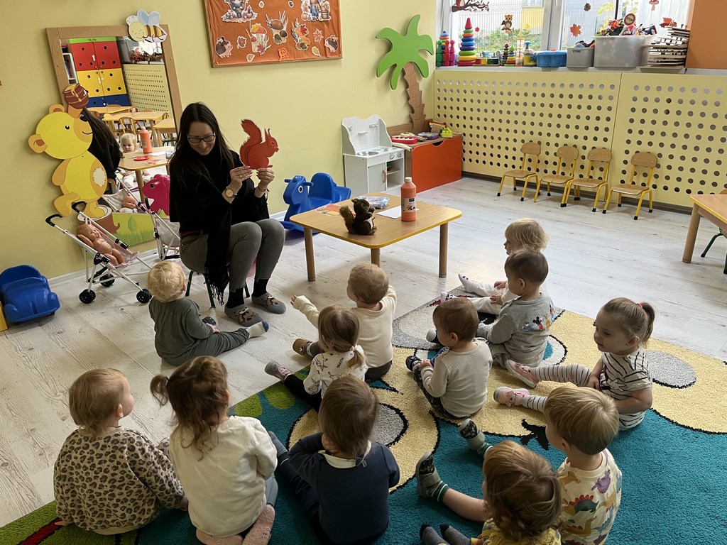 „Orzech tu orzech tam , a ja wszystkie orzechy znam…”takim wierszykiem Bumbelbee zapoznały się z wiewiórkami i ich przysmakiem czyli orzeszkami. Zabawa integrowała grupę, a usmiech cały czas gościł na ich twarzy.