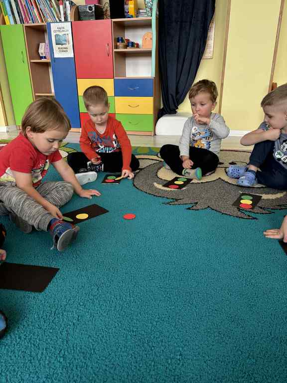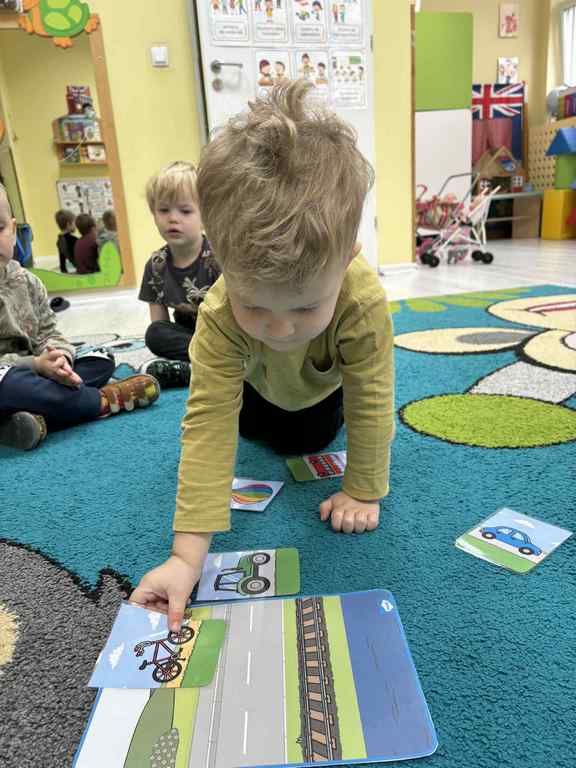 W tym tygodniu na zajęciach Jeżyki rozmawiały o komunikacji i przemieszczaniu się. Poznawały słownictwo związane z ruchem drogowym, pojazdami oraz sposobami poruszania się po mieście. Na zakończenie zajęć wykonały własne sygnalizatory świetlne, utrwalając przy tym kolory i zasady bezpiecznego przechodzenia przez ulicę.