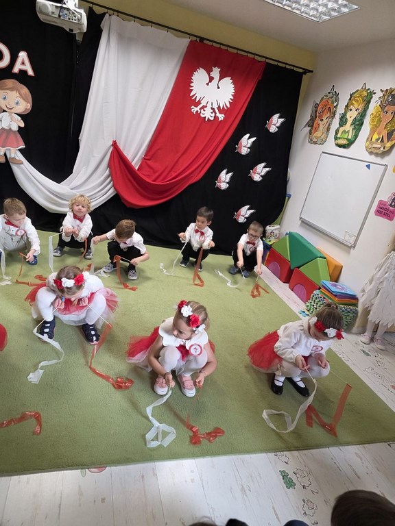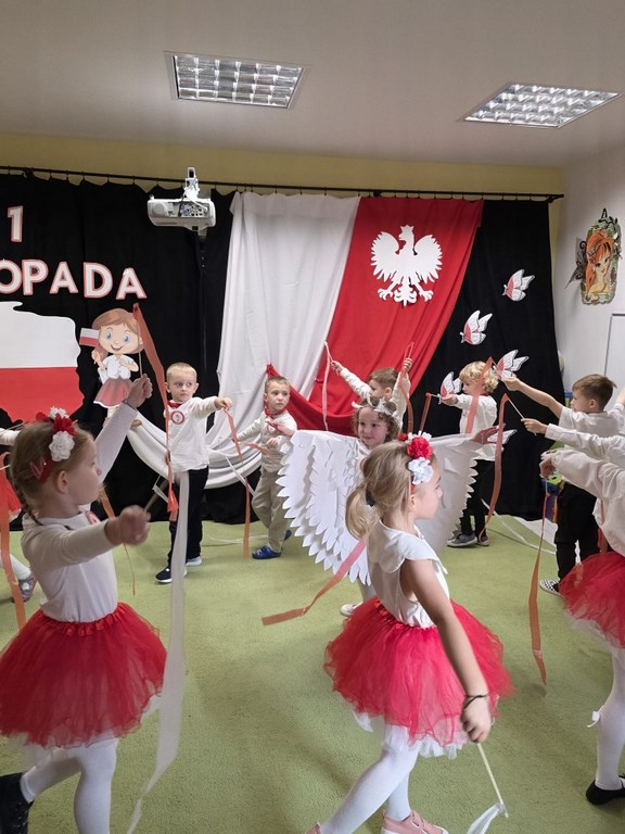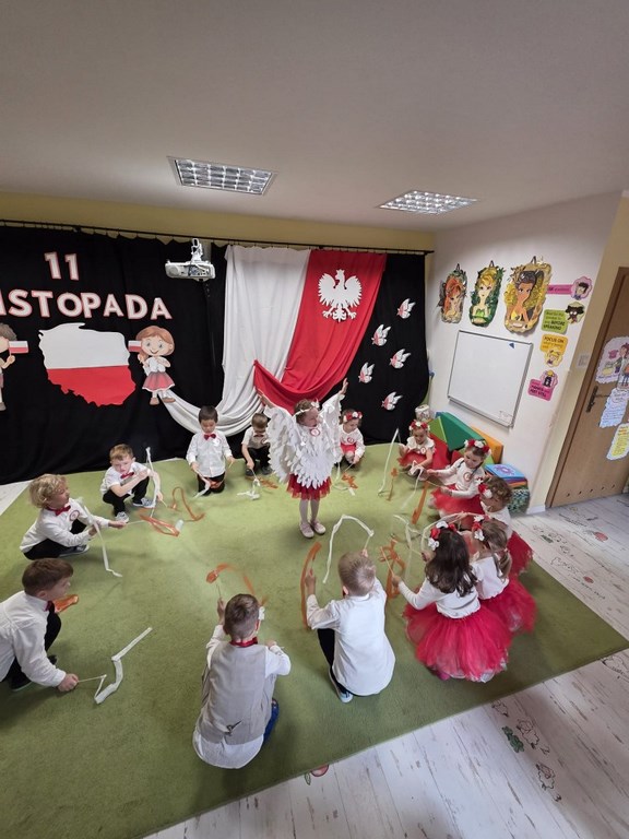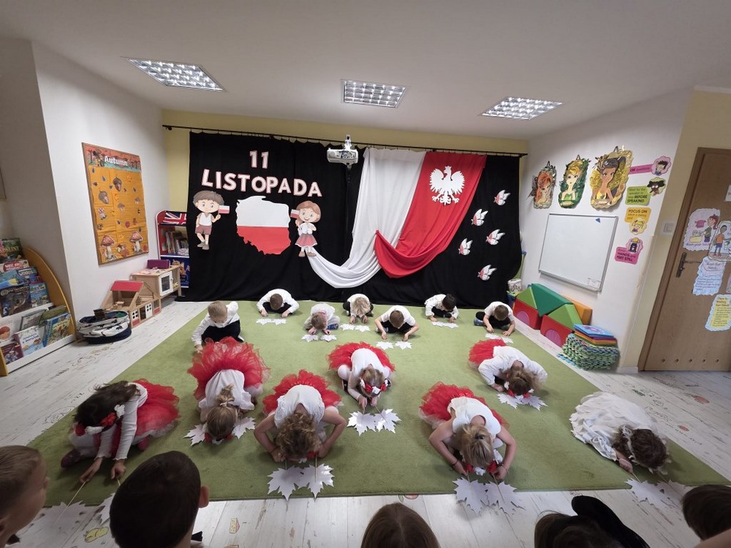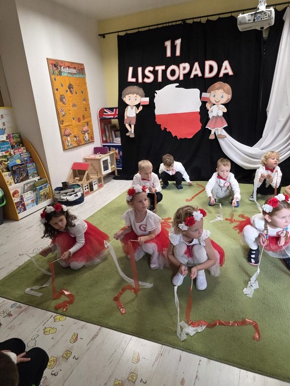Dzień dobry, nasze ” sówki” w tym roku przeprowadziły przepiękną Akademie z okazji Narodowego Święta Niepodlegości. Były wiersze, piosenki i układy choreograficzne. Biało- czerwone barwy widać było wszędzie…a w sercach dzieci dużo radiści i miłości do ojczyzny 🤍❤️