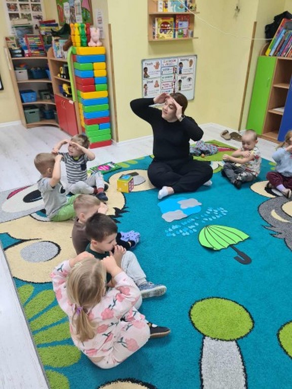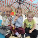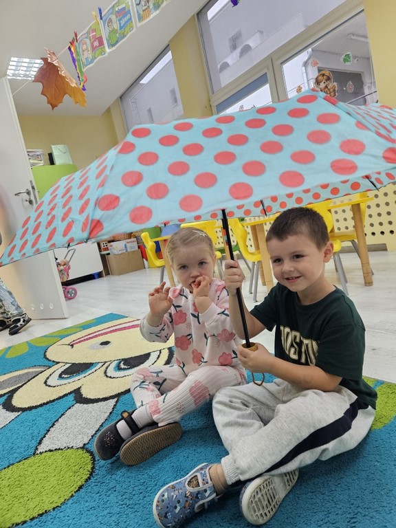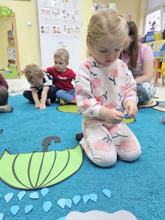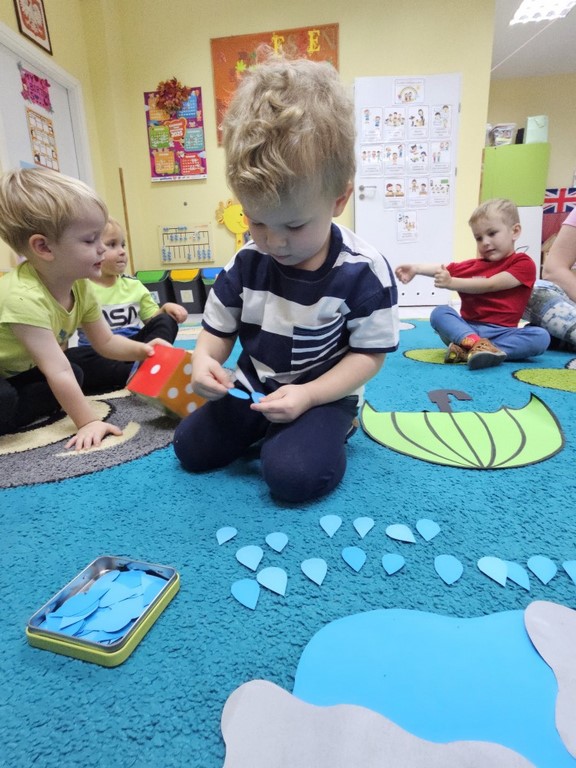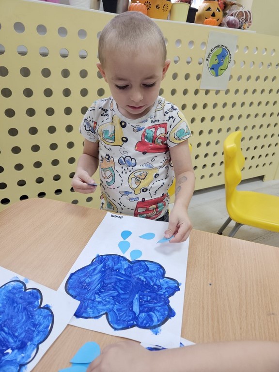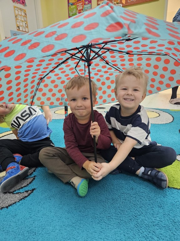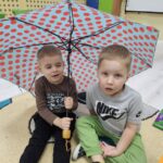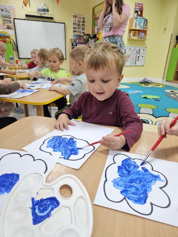 Podczas zajęć języka angielskiego Jeżyki poznały słownictwo związane z pogodą. Zabawy matematyczne i pamięciowe pomogły utrwalić poznane słownictwo oraz rozwijać umiejętność liczenia. Zdolności manualne ćwiczyliśmy wykonując pracę plastyczną pt. „It’s rainy”.