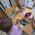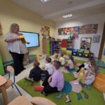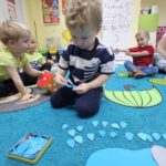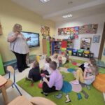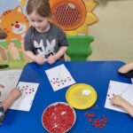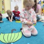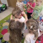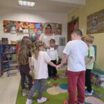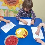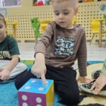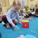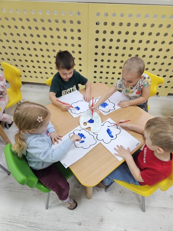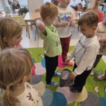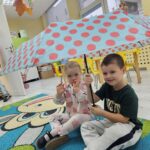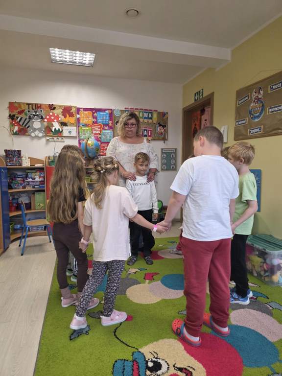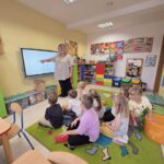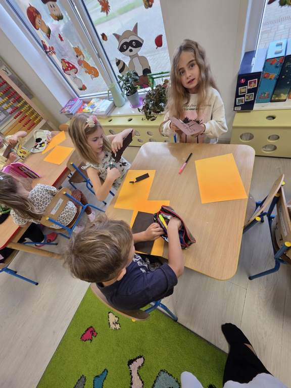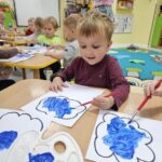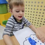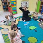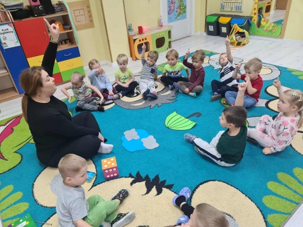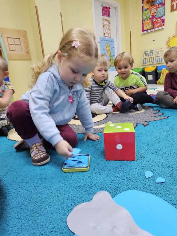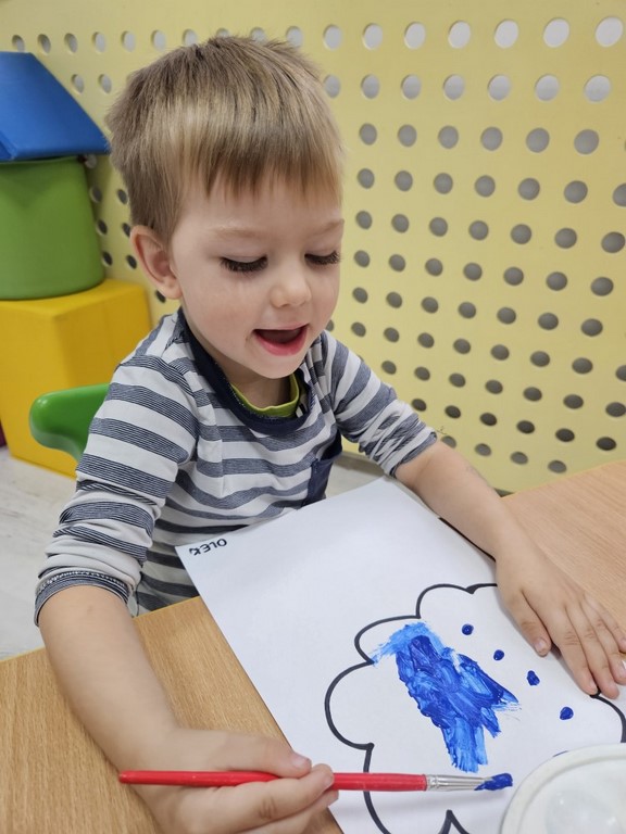 Podczas zajęć języka angielskiego Jeżyki poznały słownictwo związane z pogodą. Zabawy matematyczne i pamięciowe pomogły utrwalić poznane słownictwo oraz rozwijać umiejętność liczenia. Zdolności manualne ćwiczyliśmy wykonując pracę plastyczną pt. „It’s rainy”.