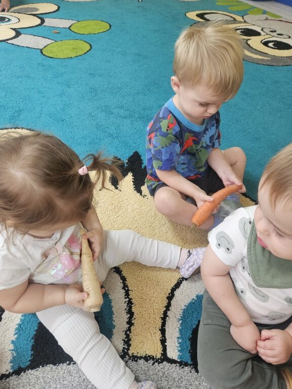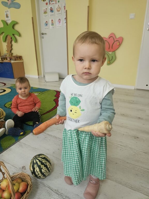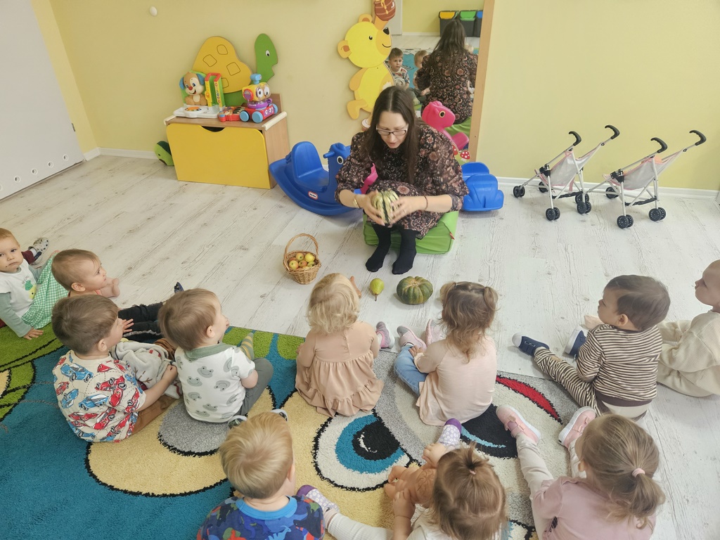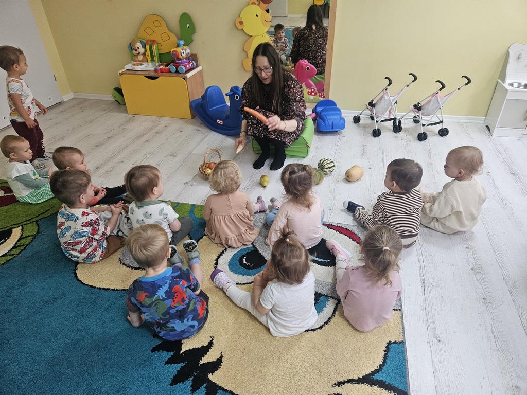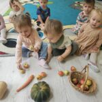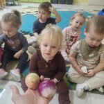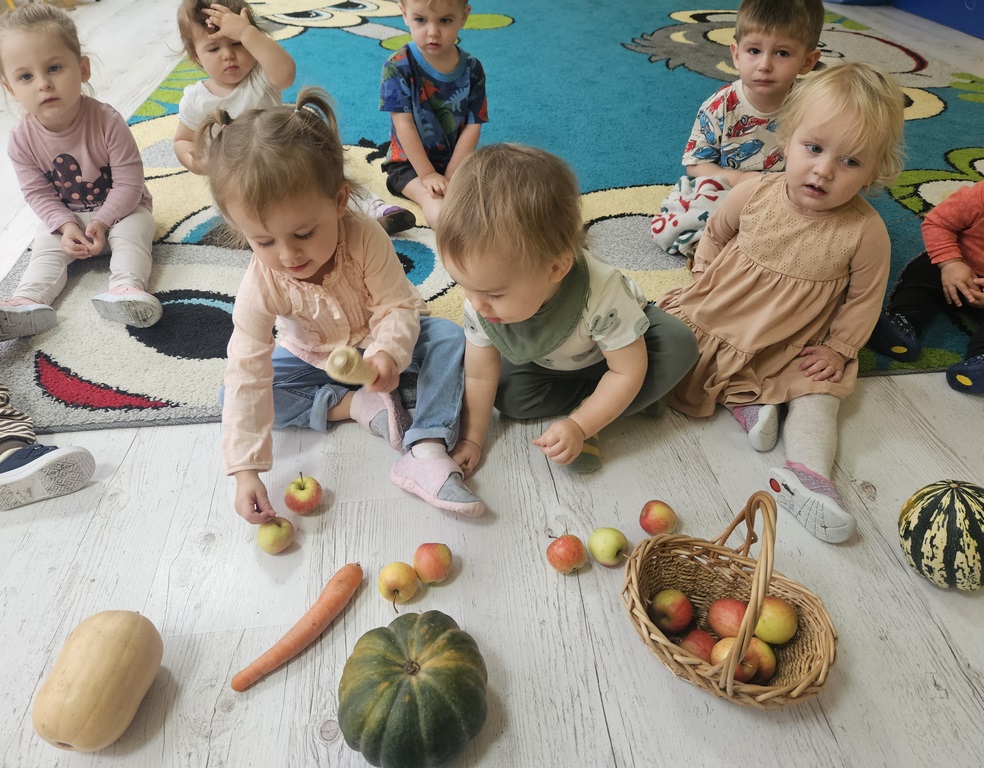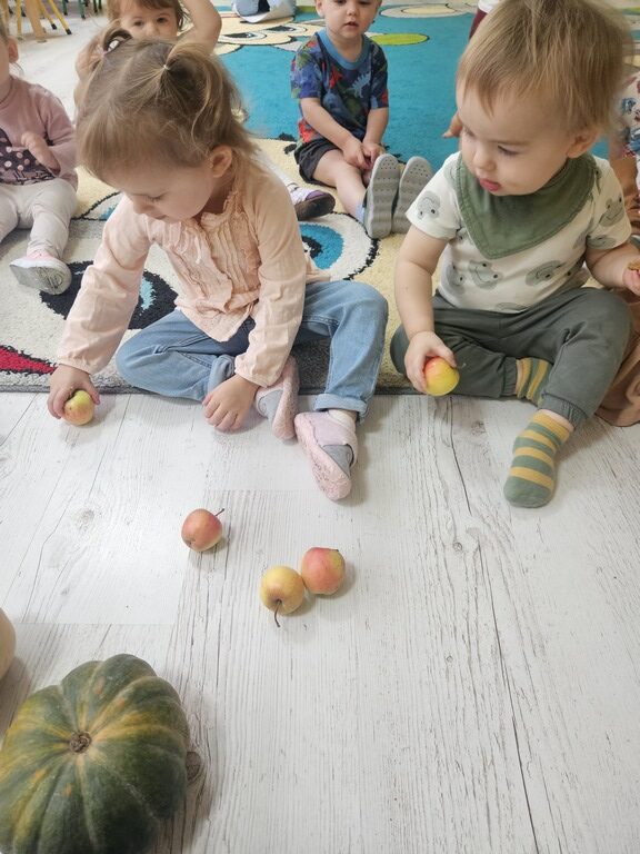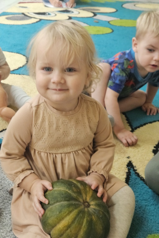 Bumbelbee miały dziś za zadanie ocenić z pomocą cioci jakie mamy kolory i kształty dyni,marchewki oraz gruszki. Wąchały, dotykały, turlały, sprawiło to naszym milusińskim wiele uśmiechu i zintegrowało grupę . Oglądającym galerię życzymy miłego dnia.