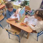 Podczas zajęć językowych Jeżyki podziwiały piękne krajobrazy Szwajcarii i nazywały ich elementy. Dzieci wykonały flagi z użyciem papieru i bibuły rozwijając motorykę małą i zdolności manualne. Szwajcaria to pyszne sery z wielkimi dziurami oraz ojczyzna krowy Milki, co oznaczało małą, czekoladową ucztę w różnych smakach 😊