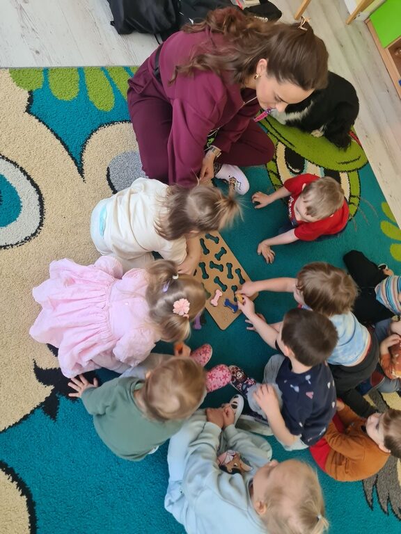 Drużyna Kangura to grupa dzieci w przedszkolu, która bierze udział w zajęciach z piłką. Podczas spotkań dzieci uczą się podstawowych ruchów, takich jak rzucanie, łapanie i kopanie piłki. Zajęcia są pełne zabawy i pomagają rozwijać sprawność fizyczną oraz współpracę w grupie. Dzieci chętnie uczestniczą w tych ćwiczeniach i cieszą się wspólną aktywnością.