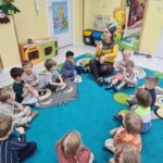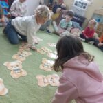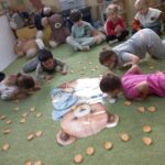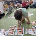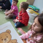 Wróbelek, gil, sikorka to ptaszki które zostają na zimę, sarenka, dzik i zajączek są dokarmiane przez leśników. Taki temat maluszki poznały w tym tygodniu na zajęciach. Żłobiaczki z zaineresowaniem słuchały opowieści cioci i chętnie pokazywały zwierzęta na obrazkach.