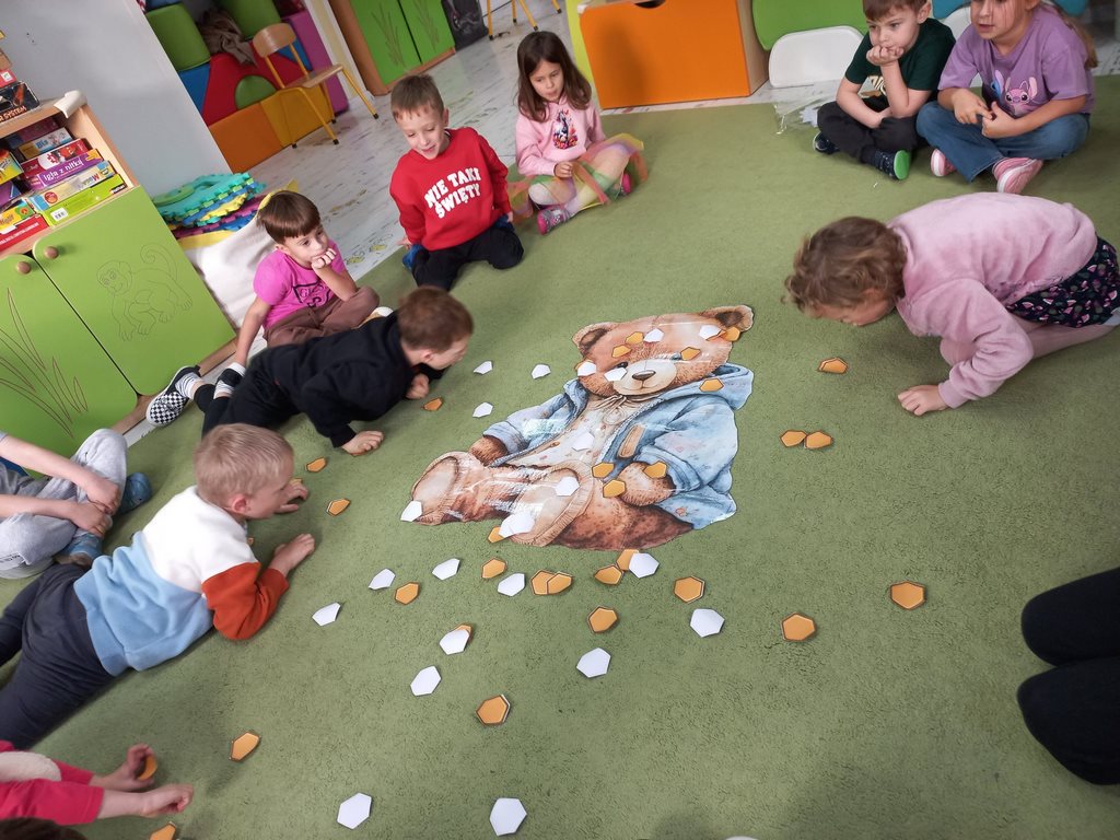 Trzmiele poznały za pomocą tablicy interaktywnej pierwsze oznaki zimy,dowiedziały się jak wygląda śnieg,co można robić zimą i jak lepić z rodzicami bałwana. Zajęcia bardzo zintegrowały grupę.