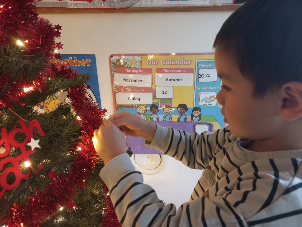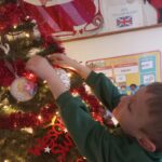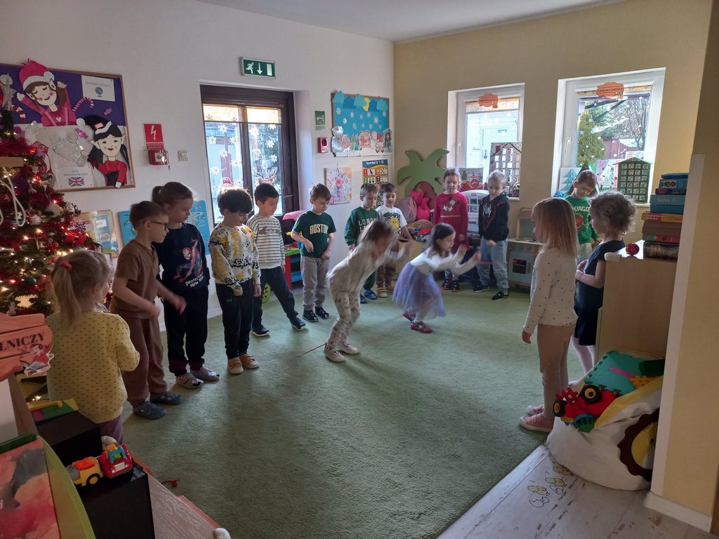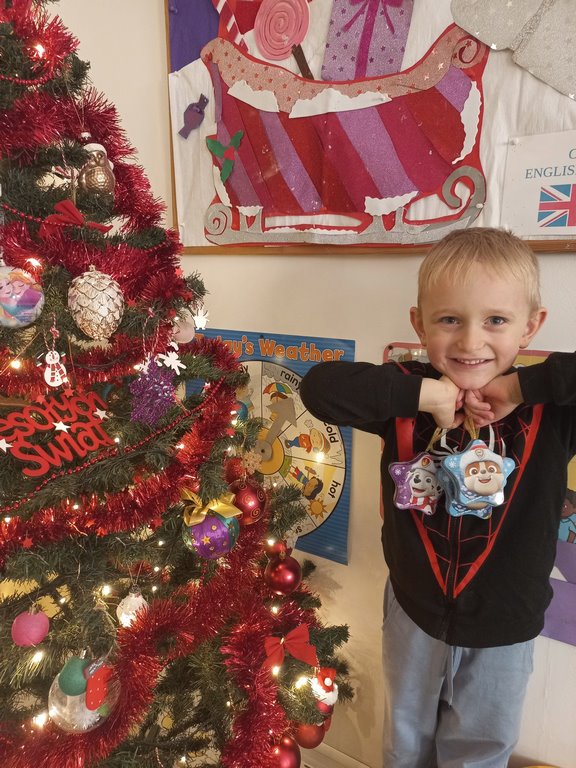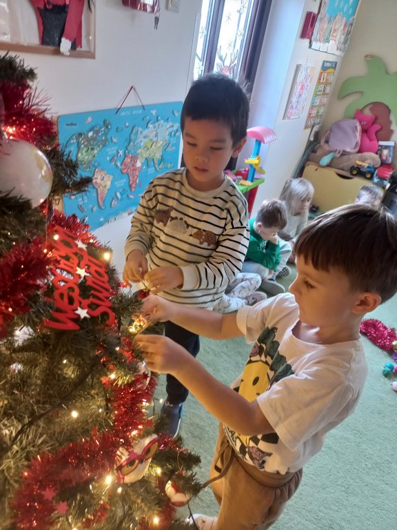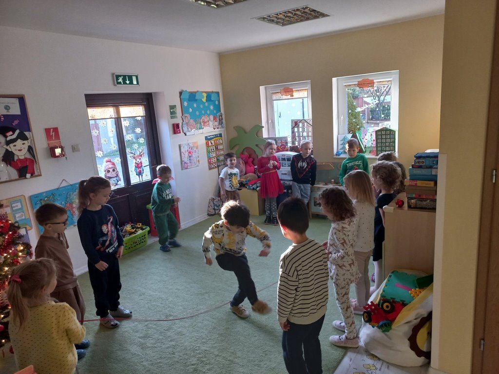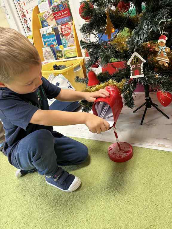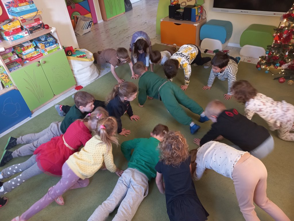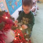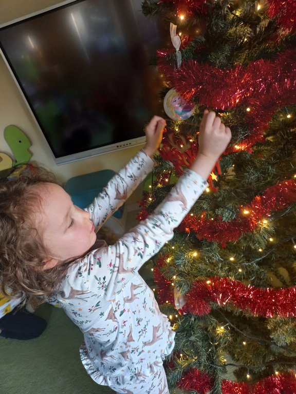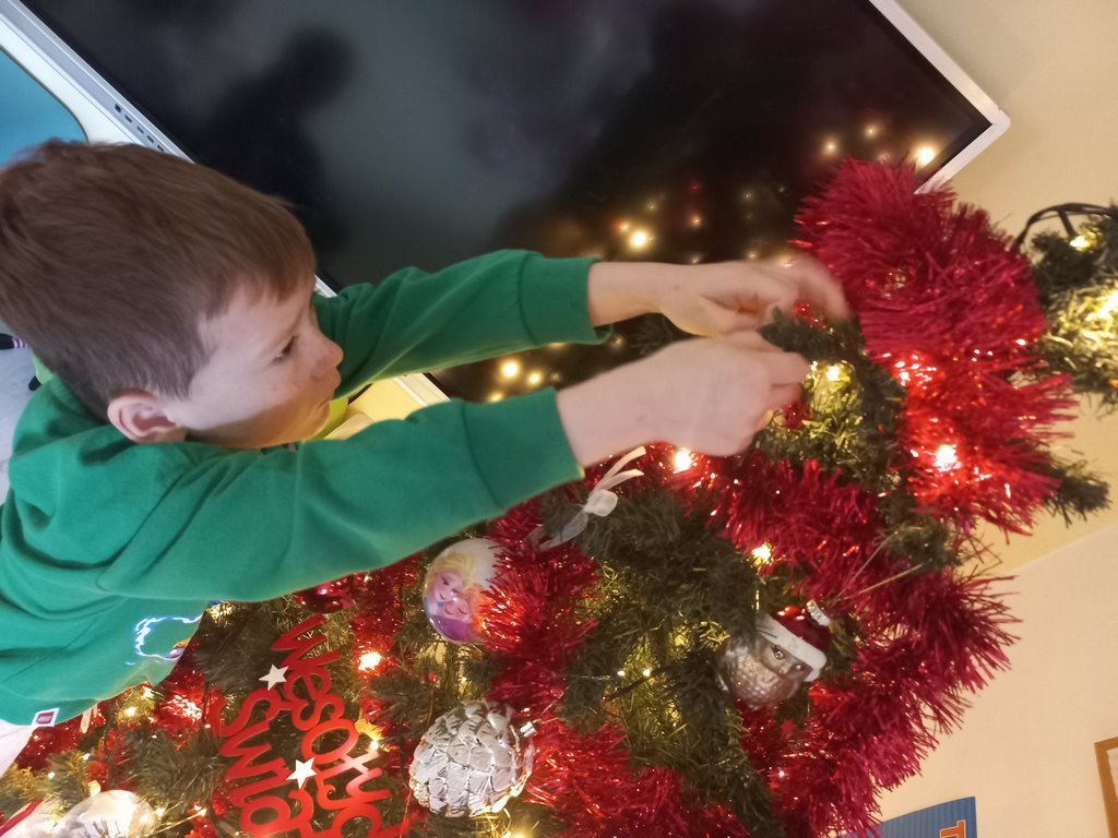 Tydzień mikołajowy w naszym przedszkolu trwa i we wtorek dzieci z grupy Jeżyki miały kolejne świąteczne zadanie. Ubrały naszą przedszkolną choinkę w wiatrołapie, która wita wszystkich wchodzących do naszej placówki zapachem lasu i mruganiem lampek. Dzieci z zadania wywiązały się wzorowo. A wszystkim odwiedzającym naszą galerię życzymy miłego dnia.