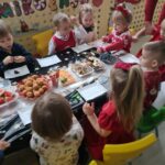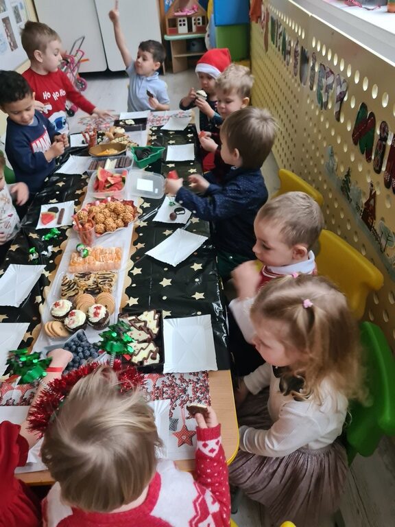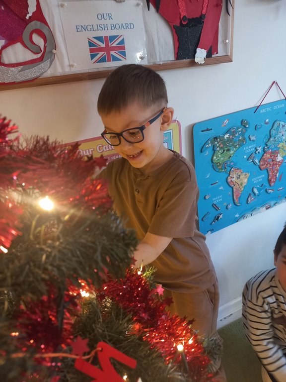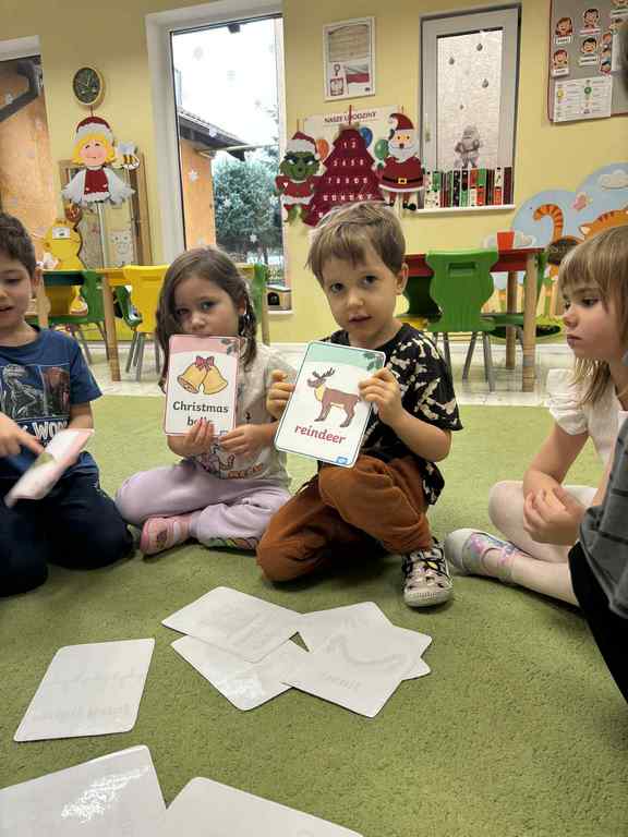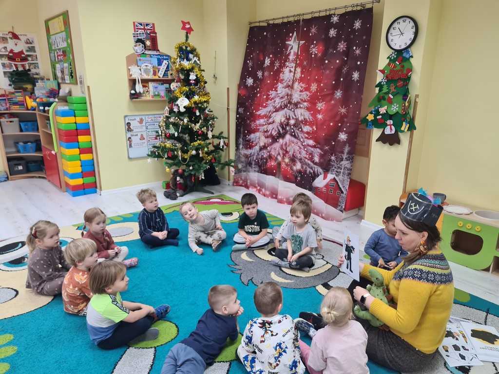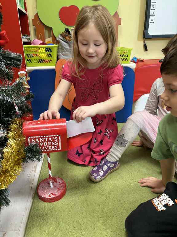 W tym tygodniu na zajęciach z języka angielskiego w grupie Pszczółek z niecierpliwością oczekiwaliśmy na wizytę szczególnego gościa, jakim jest Święty Mikołaj. Mówiliśmy o pracy listonosza, listach i pocztówkach i oglądaliśmy karty bożonarodzeniowe z różnych stron świata. Rozmawialiśmy także o wymarzonych prezentach, pisaliśmy list do Św.Mikołaja oraz czytaliśmy Mikołajowe opowieści.