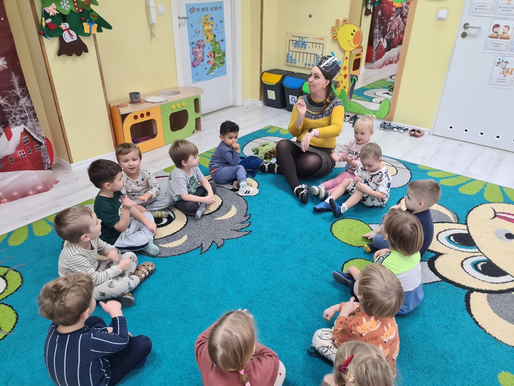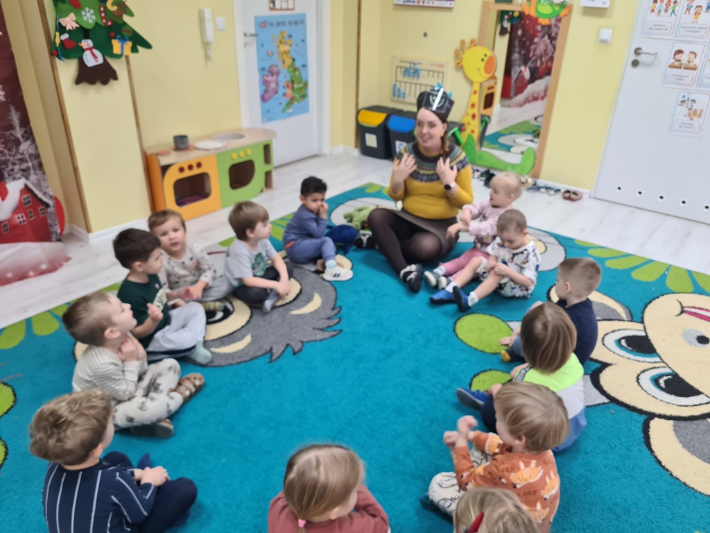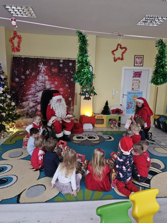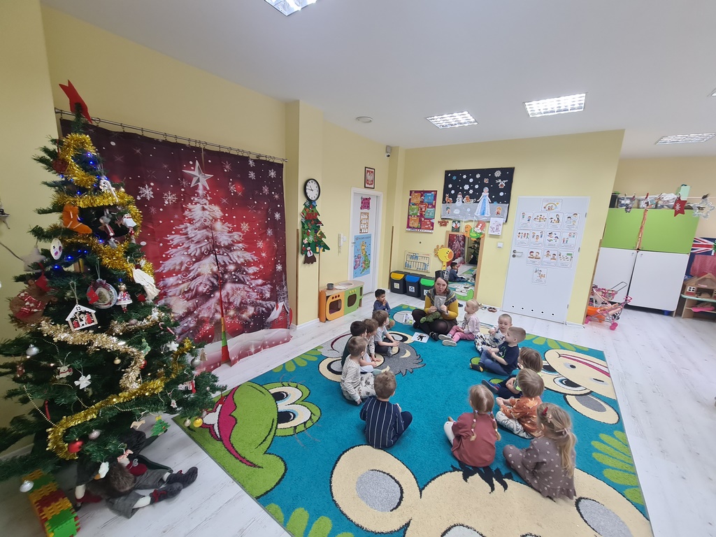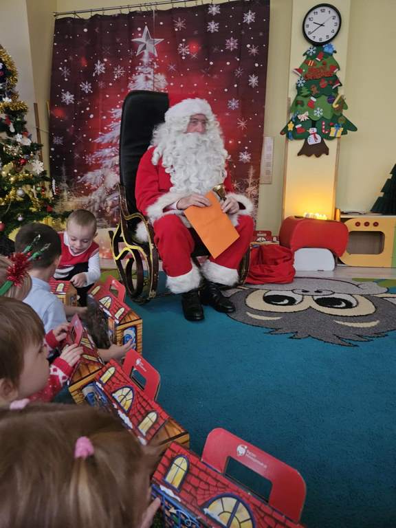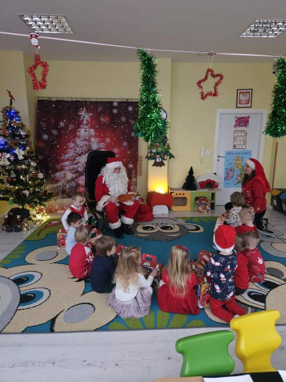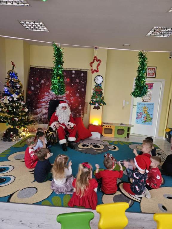 W tym tygodniu na zajęciach z języka angielskiego w grupie Sówek z niecierpliwością oczekiwaliśmy na wizytę szczególnego gościa, jakim jest Święty Mikołaj. Mówiliśmy o pracy listonosza, listach i pocztówkach i oglądaliśmy karty bożonarodzeniowe z różnych stron świata. Rozmawialiśmy także o wymarzonych prezentach, pisaliśmy list do Św.Mikołaja oraz czytaliśmy Mikołajowe opowieści.