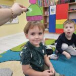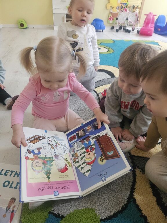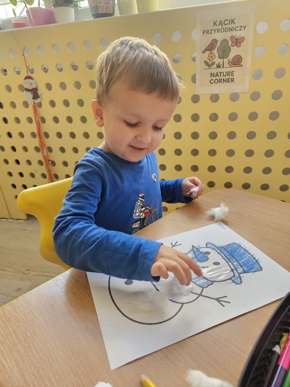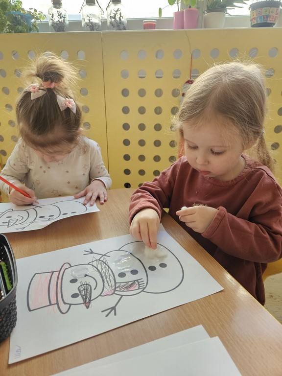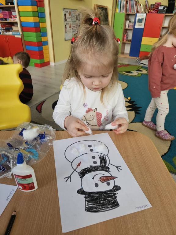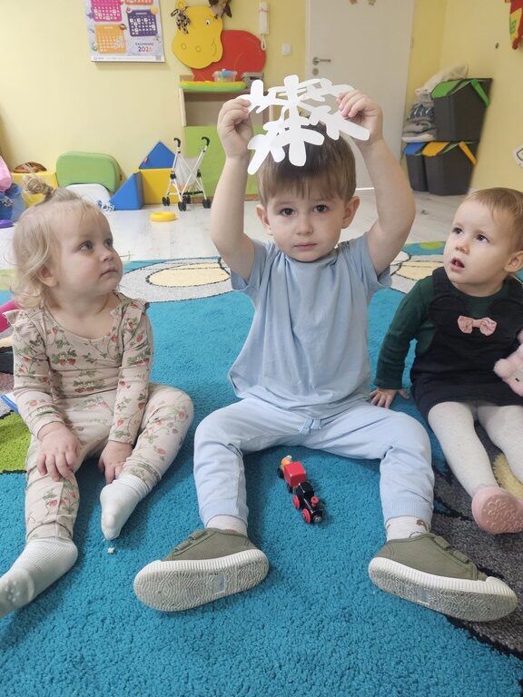 „Zima, zima,zima pada pada śnieg…” nasze żłobiaczki poznały nową piosenkę z pokazywaniem, bo temat w tym tygodniu to :zima. Maluszki bardzo chętnie wykonały pracę plastyczną: szron.