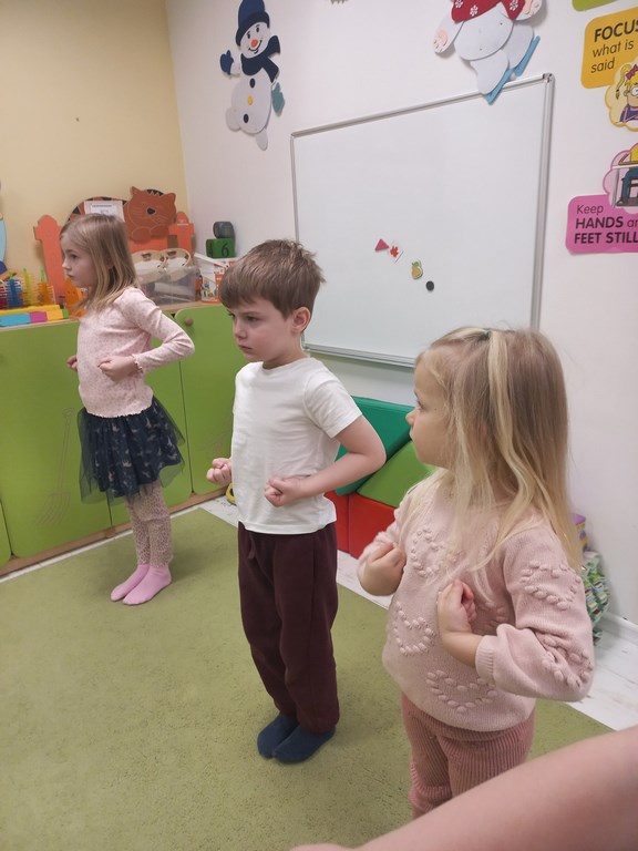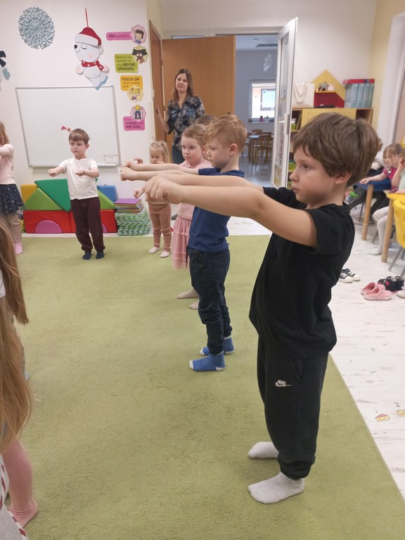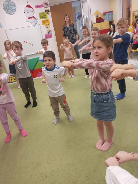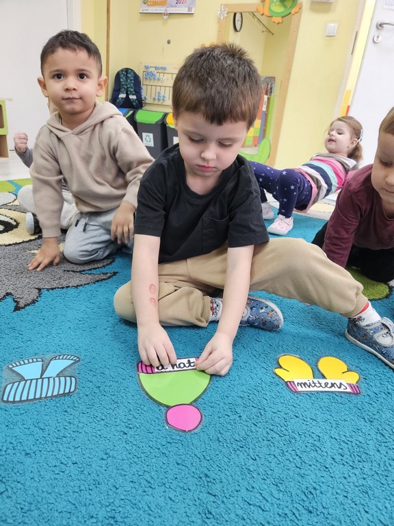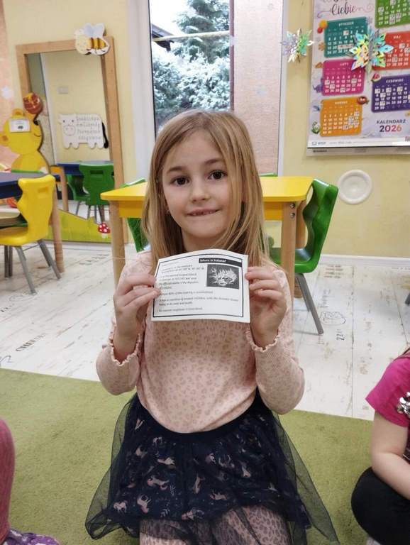 Jeżyki podczas zajęć języka angielskiego poznały nazwy ubrań zimowych oraz zimowych aktywności. Wśród wielu zabaw pamięciowych pozwalających zapamiętać nowe słownictwo, dzieciom najbardziej podobała się zabawa w „pranie” i rozwieszanie papierowych ubrań na sznureczku. Jeżyki wyruszyły także w krótką podróż do Islandii, gdzie poznały islandzkie symbole – flagę, zwierzęta zamieszkujące wyspę oraz niesamowite wulkany i gejzery.