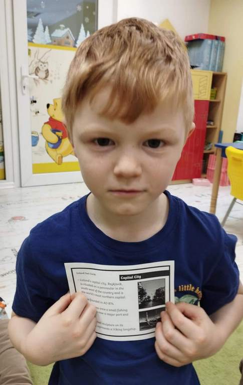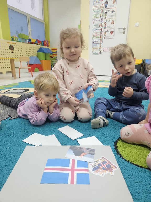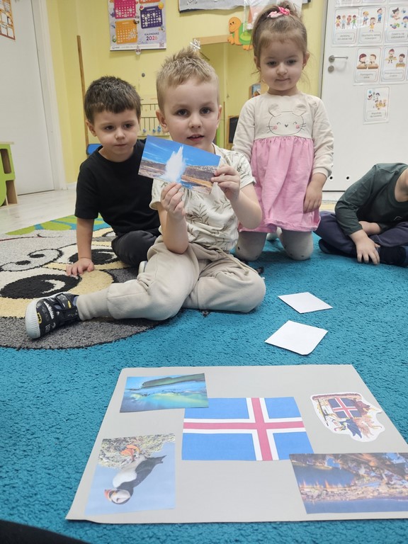 Kolejny tydzień stycznia na zajęciach z języka angielskiego w grupie Pszczółek był wirtualną wycieczką do bajecznie pięknej Islandii. Poznaliśmy symbole narodowe oraz kulturowe tego mroźnego kraju, zwiedziliśmy jego stolicę, Reykjavik, piękne lodowce oraz uśpione wulkany. Mówiliśmy o niezwykłych zwierzętach, roślinności oraz zorzach polarnych występujących właśnie tam oraz o islandzkich przysmakach I dziejach Wikingów.