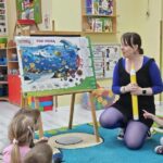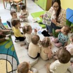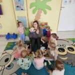 Podczas zajęć języka angielskiego Jeżyki poznały słownictwo związane z bezpieczną zabawą na placu zabaw. Dodatkowo, w związku z Children’s Book Day 📚 przejrzeliśmy ulubione książeczki dzieci, opisywaliśmy ich rozmiar i elementy widoczne na okładkach, przypominaliśmy treści bajek… A wszystko to w języku angielskim 😊🇬🇧