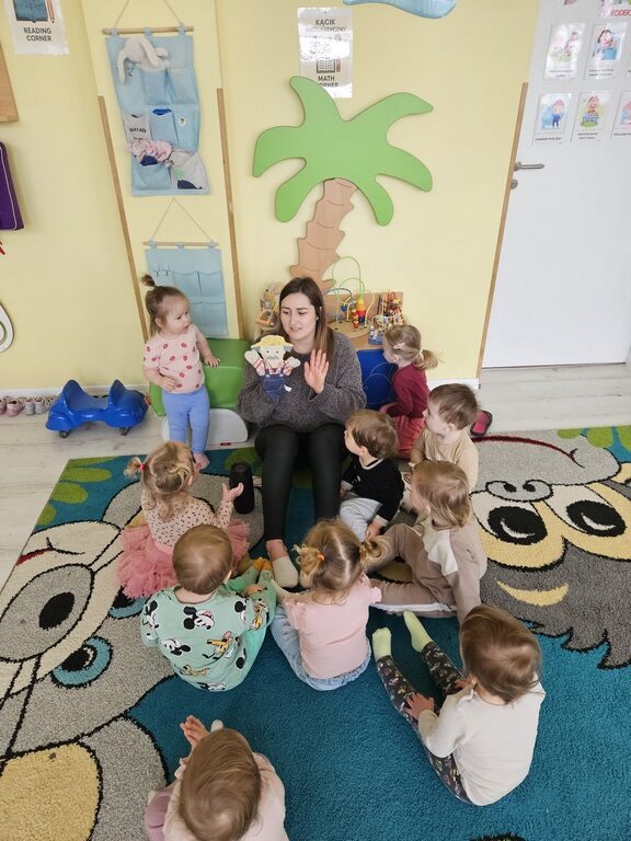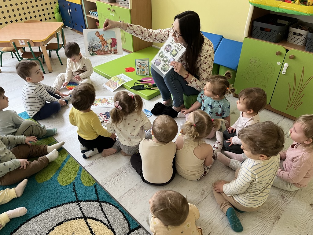 Podczas zajęć języka angielskiego Jeżyki poznały słownictwo związane z bezpieczną zabawą na placu zabaw. Dodatkowo, w związku z Children’s Book Day 📚 przejrzeliśmy ulubione książeczki dzieci, opisywaliśmy ich rozmiar i elementy widoczne na okładkach, przypominaliśmy treści bajek… A wszystko to w języku angielskim 😊🇬🇧