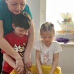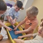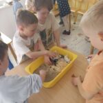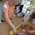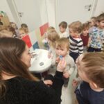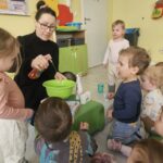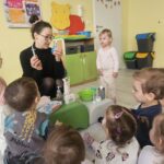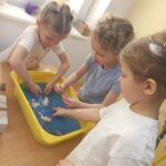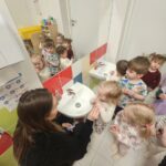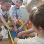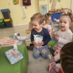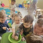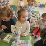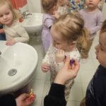 W tym tygodniu maluszki zapoznały się ze szczoteczką i pastą, a także z różnymi mydełkami. Zajęcia bardzo zintegrowały grupę, a szczególnie zabawa z wodą i różnymi pastami. Dzieci chętnie uczestniczyły w zajęciach.