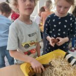 Zajęcia w przedszkolu dotyczące zwierząt na wsi zostały przeprowadzone w formie rozmowy oraz prezentacji ilustracji zwierząt gospodarskich.  Wprowadzono również zabawy sensoryczne, podczas których przedszkolaki rozpoznawały różne faktury i przedmioty związane z tematyką wsi. Dzieci wykonały także  prace plastyczne, utrwalając zdobyte wiadomości i rozwijając swoją wyobraźnię.
