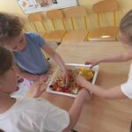 W tym tygodniu w grupie Naszych Pszczółek na zajęciach z języka angielskiego mieliśmy tydzień tematycznie związany z wiosennym odżywianiem. Przypomnieliśmy sobie nazwy wiosennych warzyw, porównywaliśmy zdrowe i niezdrowe potrawy oraz układaliśmy smaczne i zdrowe wiosenne menu. Mówiliśmy także o zdrowym stylu życia i o tym, jak ważna jest nie tylko zdrowa dieta, ale również sport i aktywny wypoczynek.