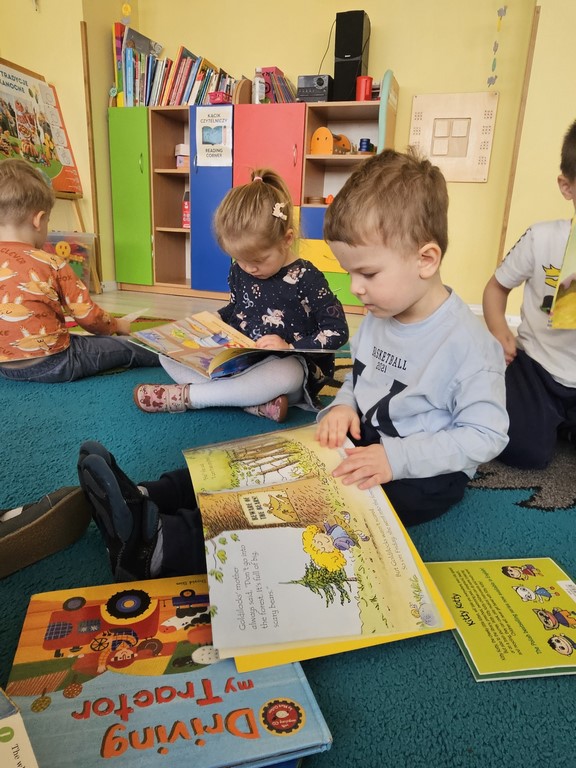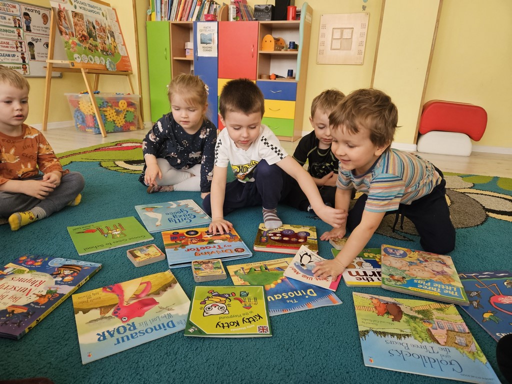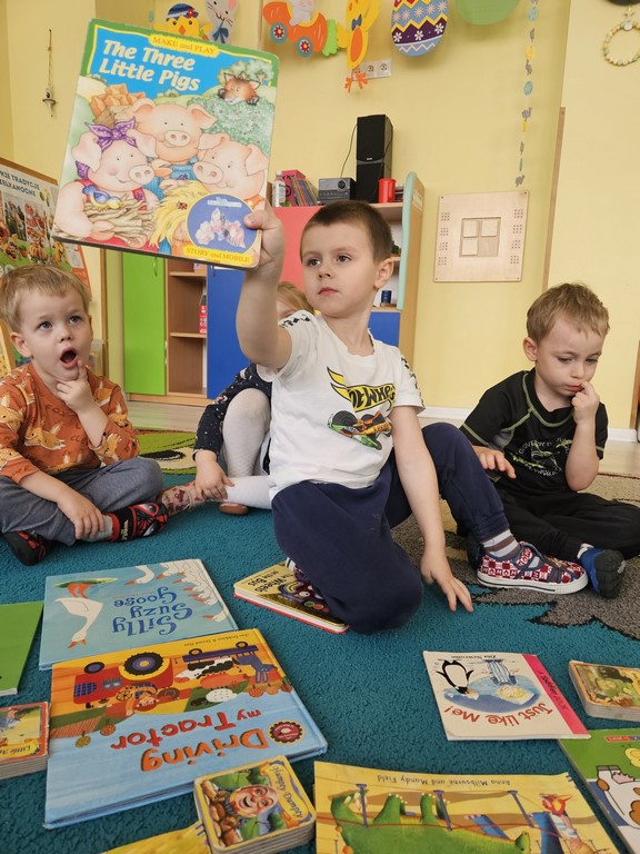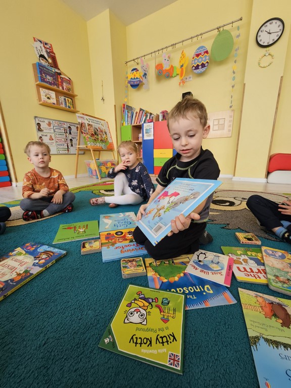 Podczas zajęć języka angielskiego Jeżyki poznały słownictwo związane z bezpieczną zabawą na placu zabaw. Dodatkowo, w związku z Children’s Book Day 📚 przejrzeliśmy ulubione książeczki dzieci, opisywaliśmy ich rozmiar i elementy widoczne na okładkach, przypominaliśmy treści bajek… A wszystko to w języku angielskim 😊🇬🇧