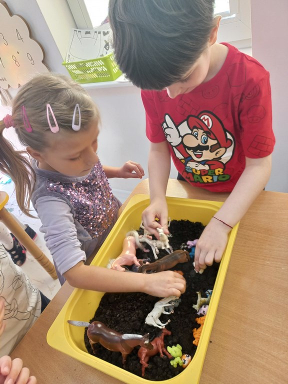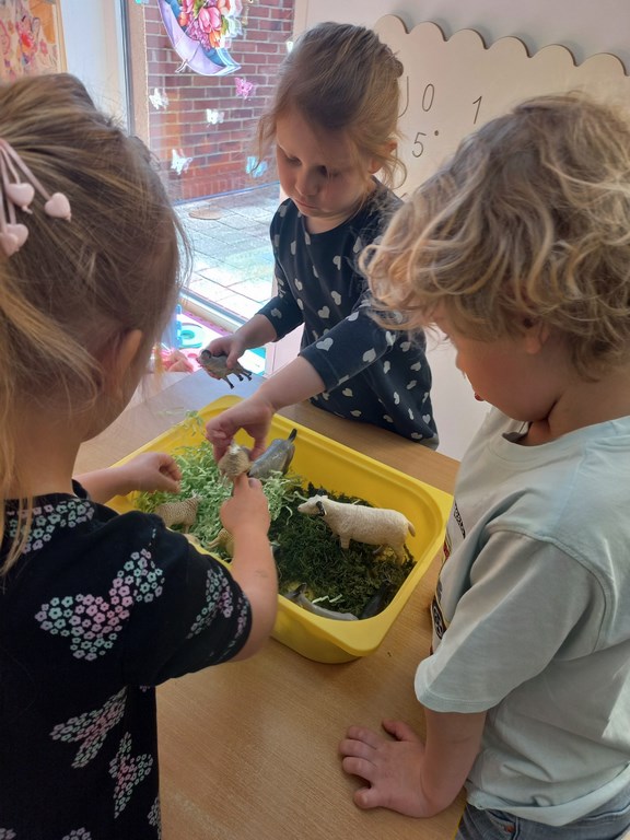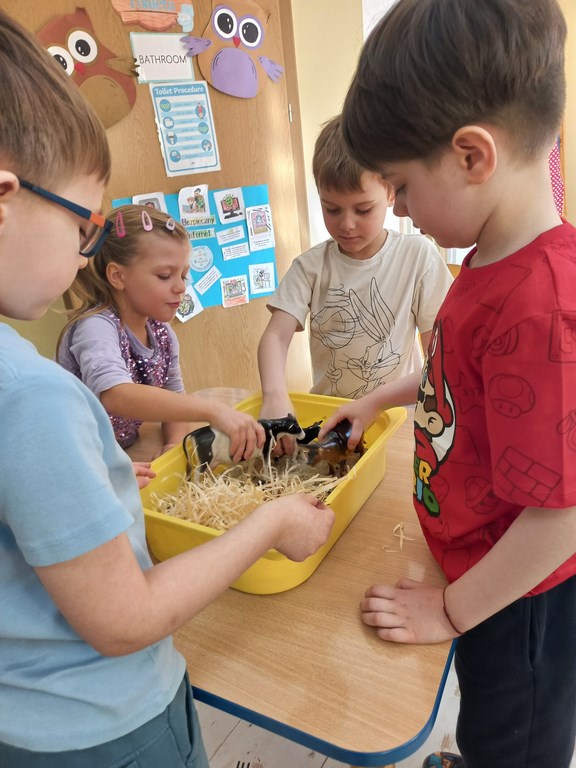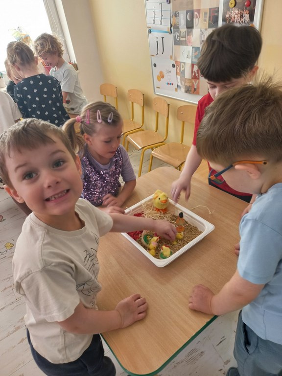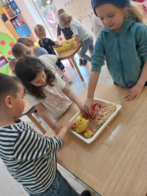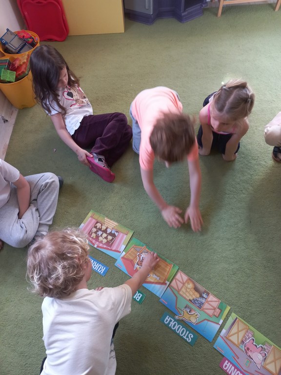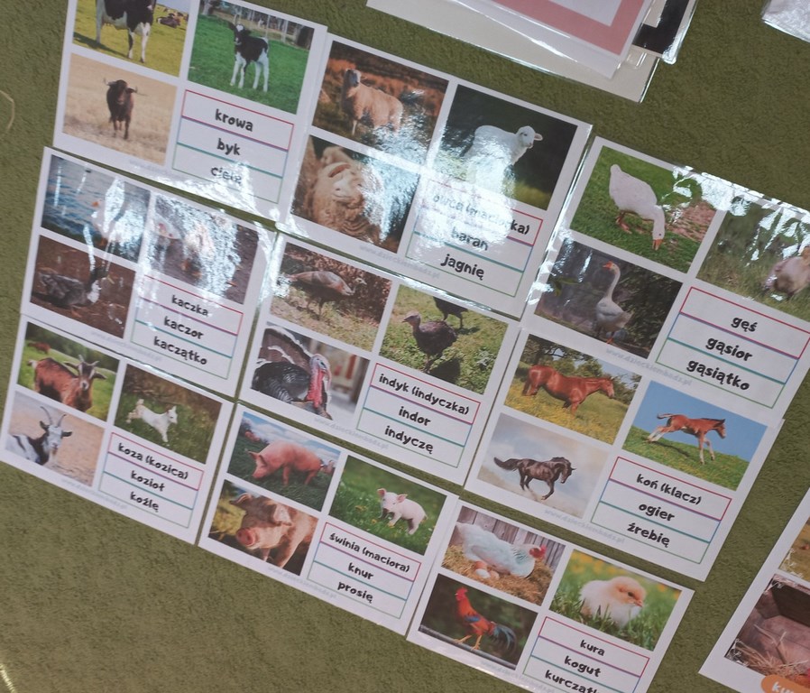 Zajęcia w przedszkolu dotyczące zwierząt na wsi zostały przeprowadzone w formie rozmowy oraz prezentacji ilustracji zwierząt gospodarskich.  Wprowadzono również zabawy sensoryczne, podczas których przedszkolaki rozpoznawały różne faktury i przedmioty związane z tematyką wsi. Dzieci wykonały także  prace plastyczne, utrwalając zdobyte wiadomości i rozwijając swoją wyobraźnię.