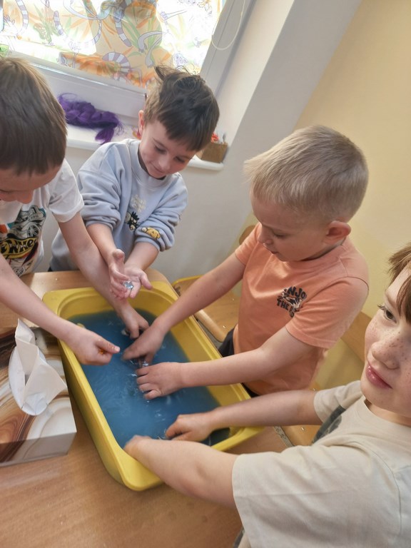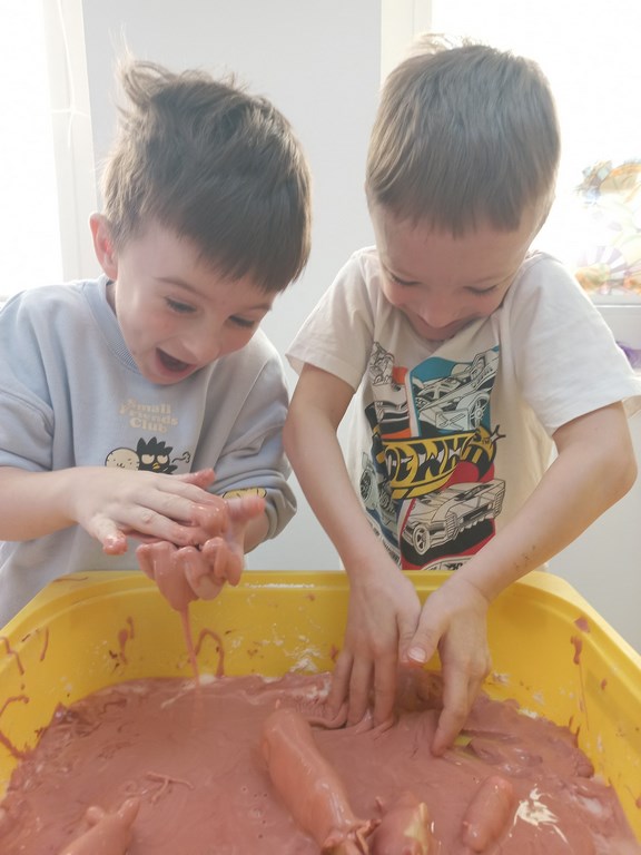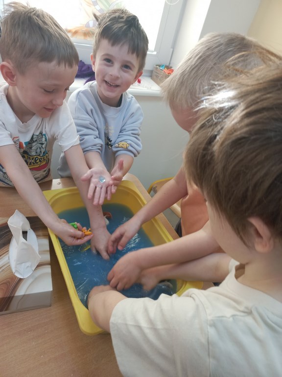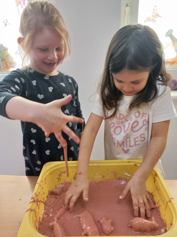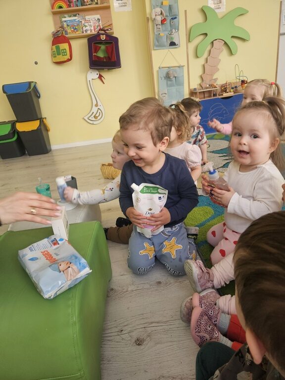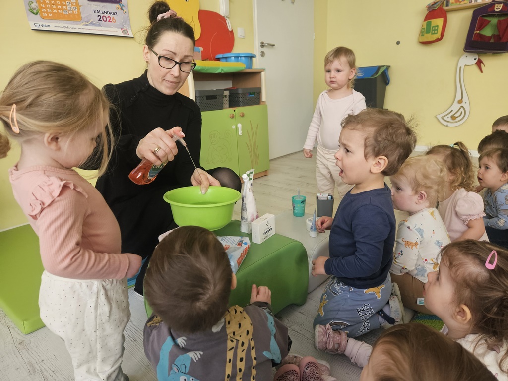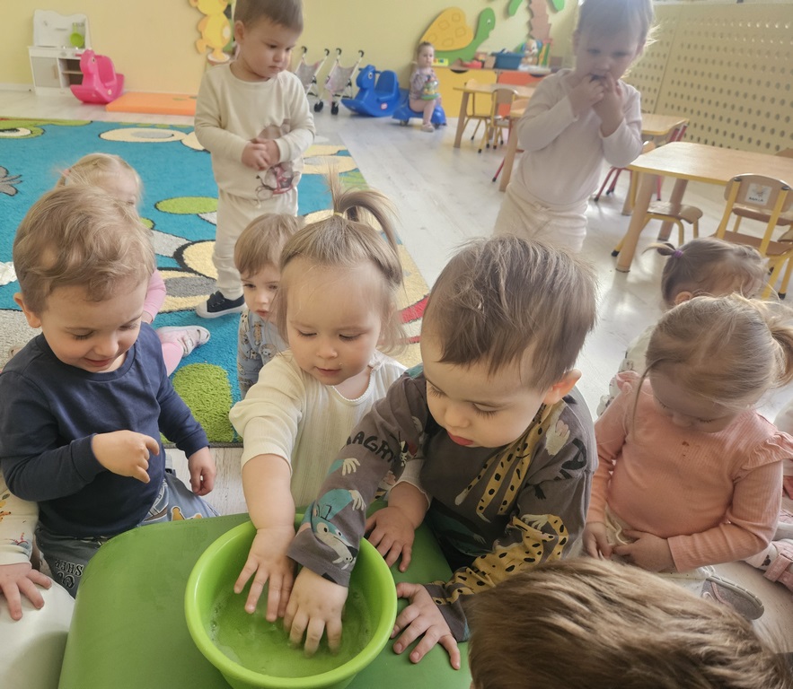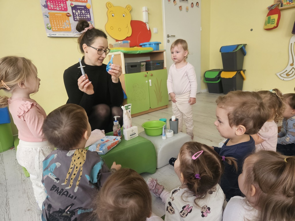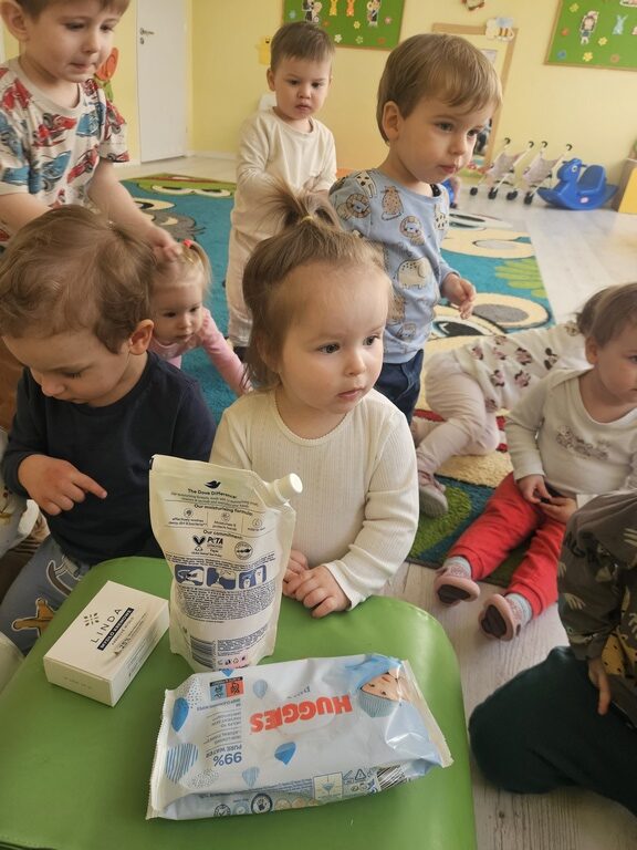 W tym tygodniu maluszki zapoznały się ze szczoteczką i pastą, a także z różnymi mydełkami. Zajęcia bardzo zintegrowały grupę, a szczególnie zabawa z wodą i różnymi pastami. Dzieci chętnie uczestniczyły w zajęciach.