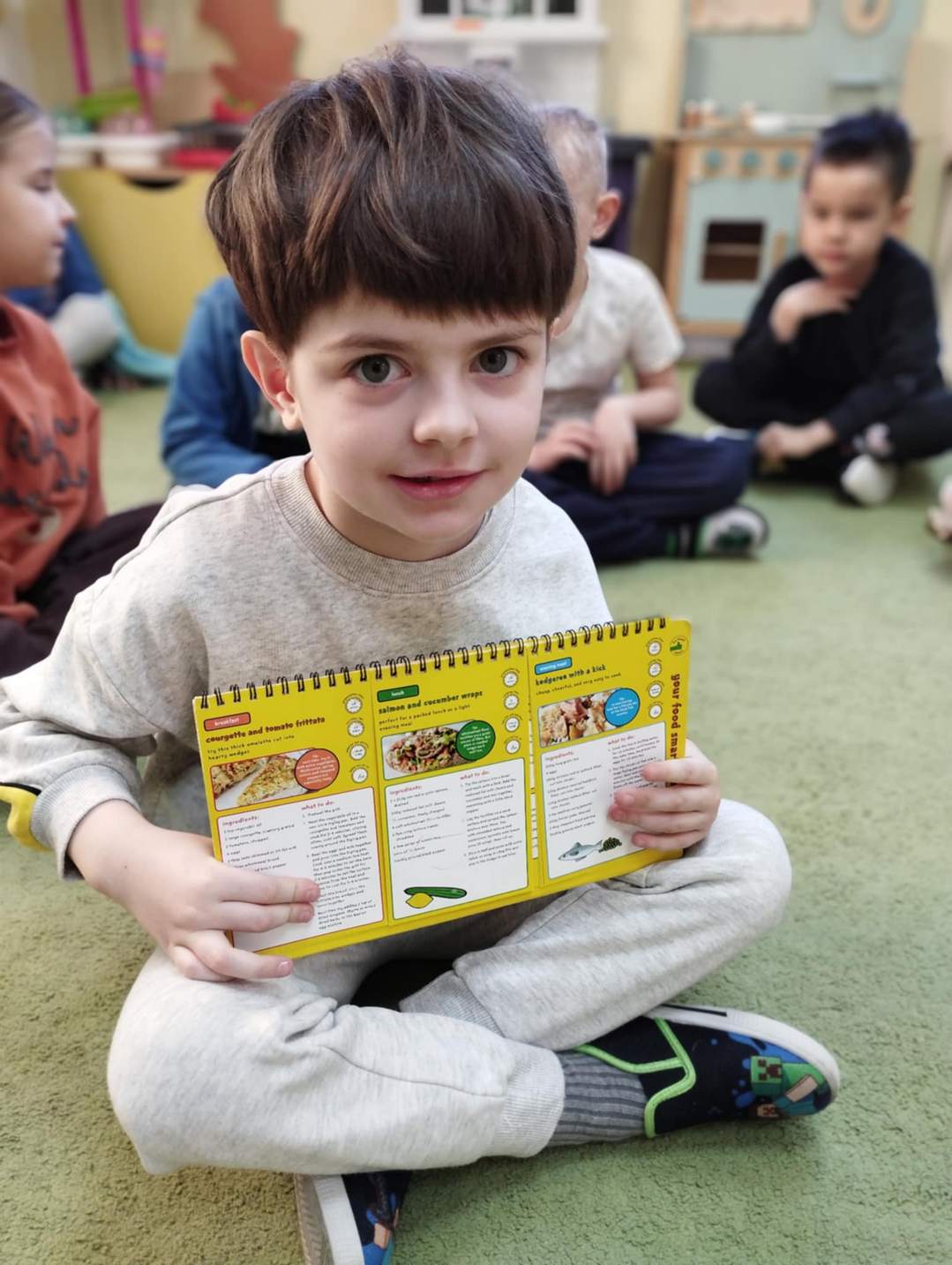 W tym tygodniu w grupie Naszych Sówek na zajęciach z języka angielskiego mieliśmy tydzień tematycznie związany z wiosennym odżywianiem. Przypomnieliśmy sobie nazwy wiosennych warzyw, porównywaliśmy zdrowe i niezdrowe potrawy oraz układaliśmy smaczne i zdrowe wiosenne menu. Mówiliśmy także o zdrowym stylu życia i o tym, jak ważna jest nie tylko zdrowa dieta, ale również sport i aktywny wypoczynek.