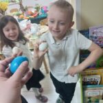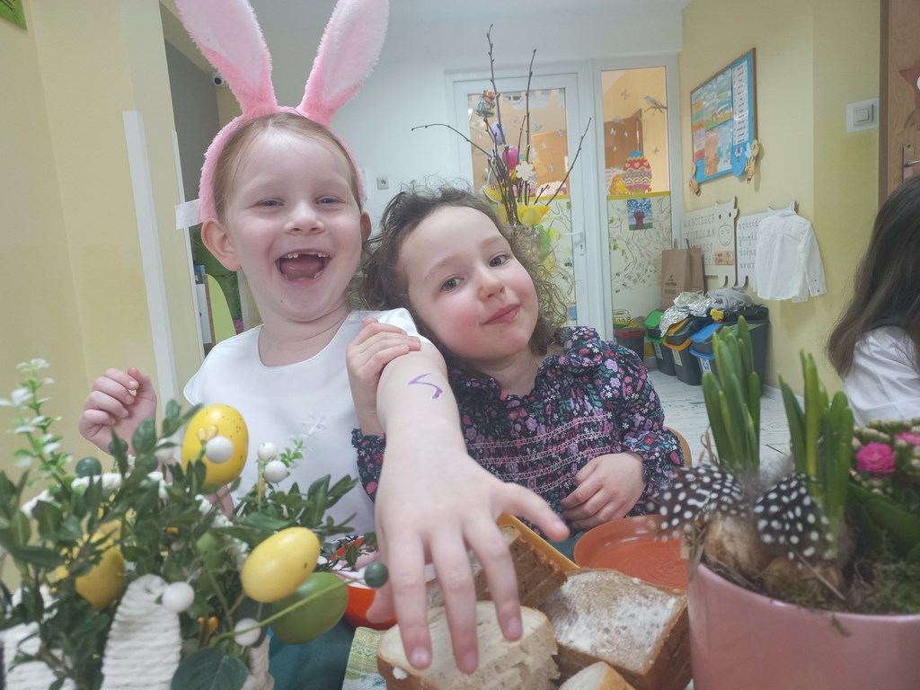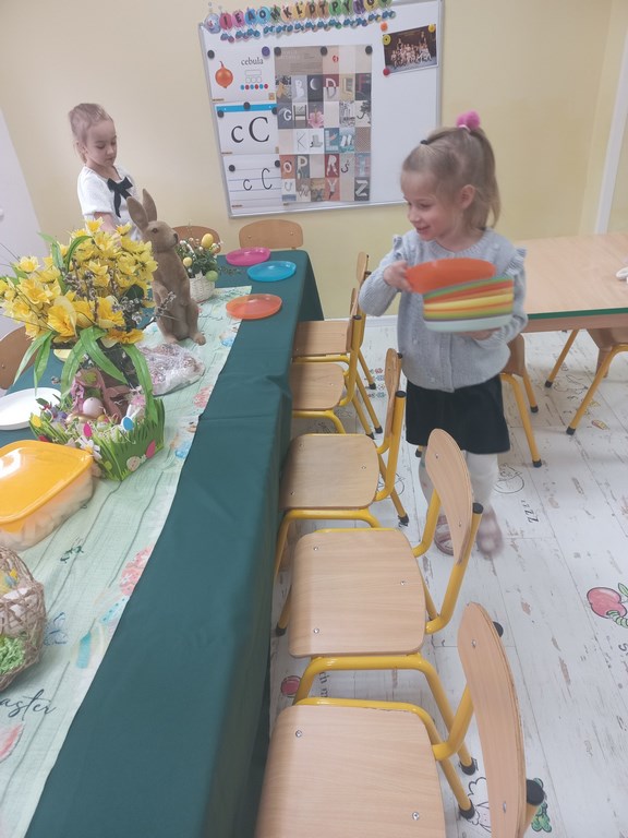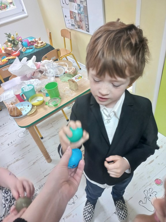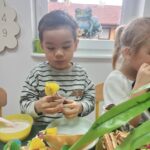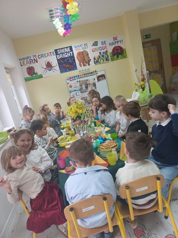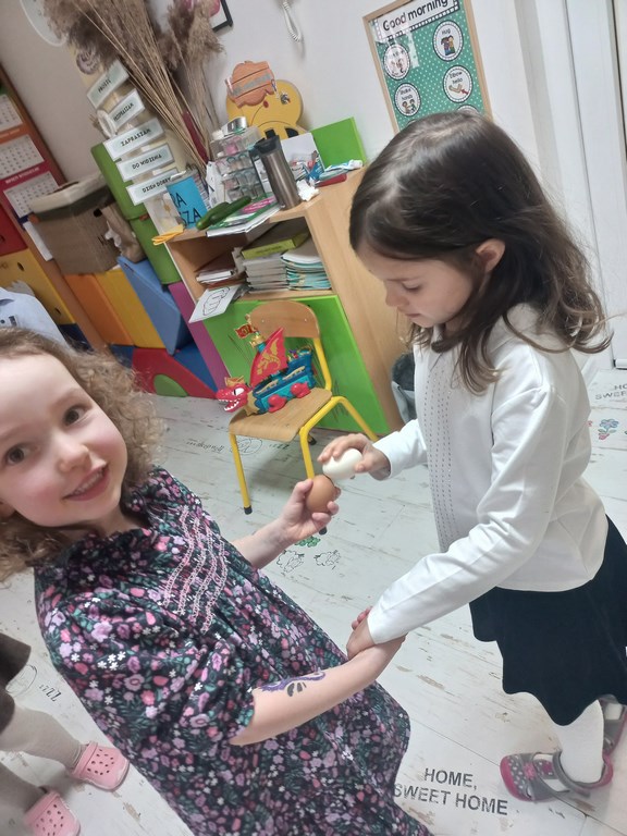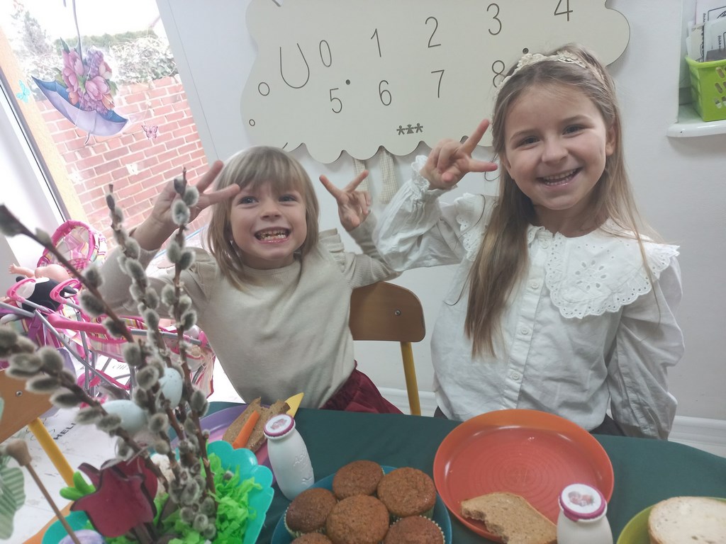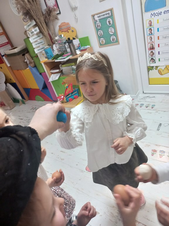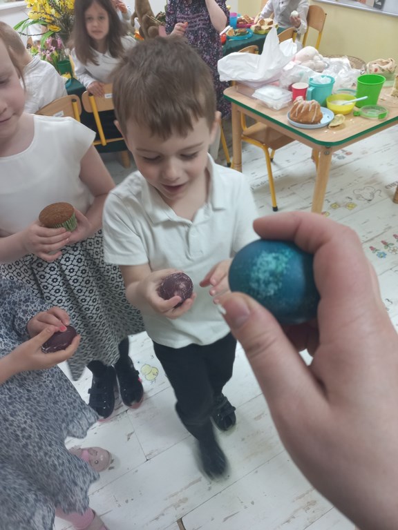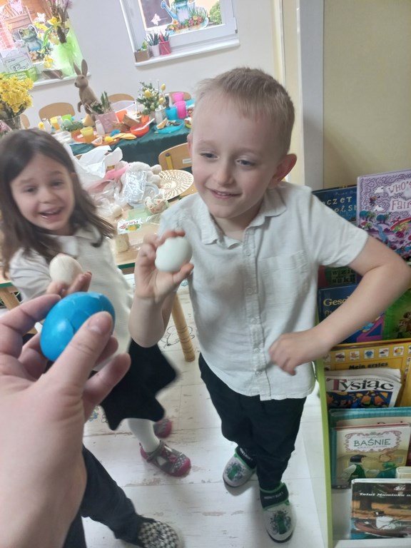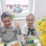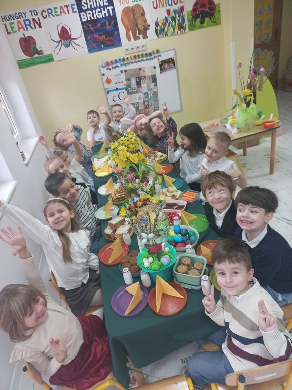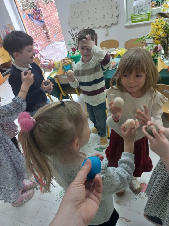 Ten tydzień na zajęciach z języka angielskiego u Naszych Pszczółek był tygodniem związanym z nadchodzącymi Świętami Wielkanocnymi. Rozmawialiśmy o symbolach wielkanocnych oraz o Wielkanocnych zwyczajach z różnych stron świata, Przygotowaliśmy również występ artystyczny dla Naszych Rodziców i bliskich z okazji Warsztatów Wielkanocnych. Happy Easter, Everyone! 🙂