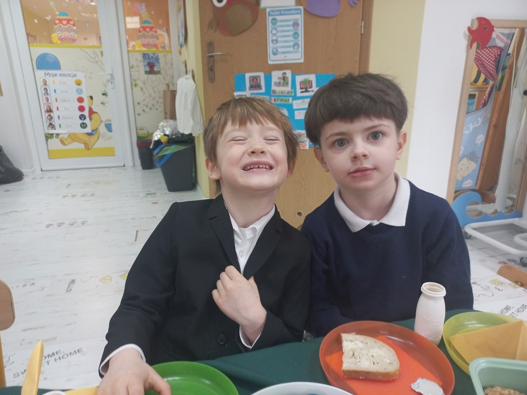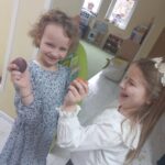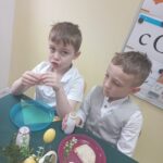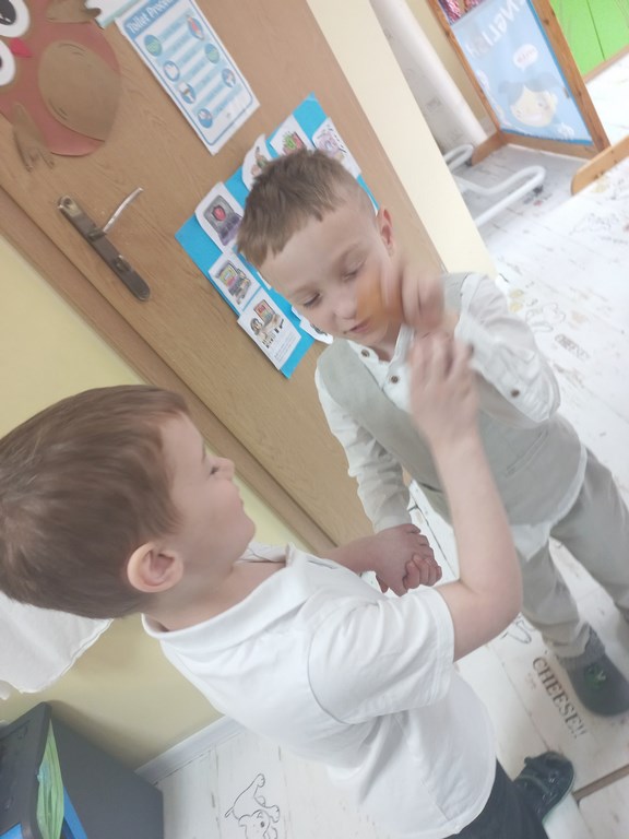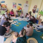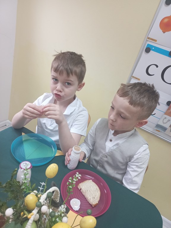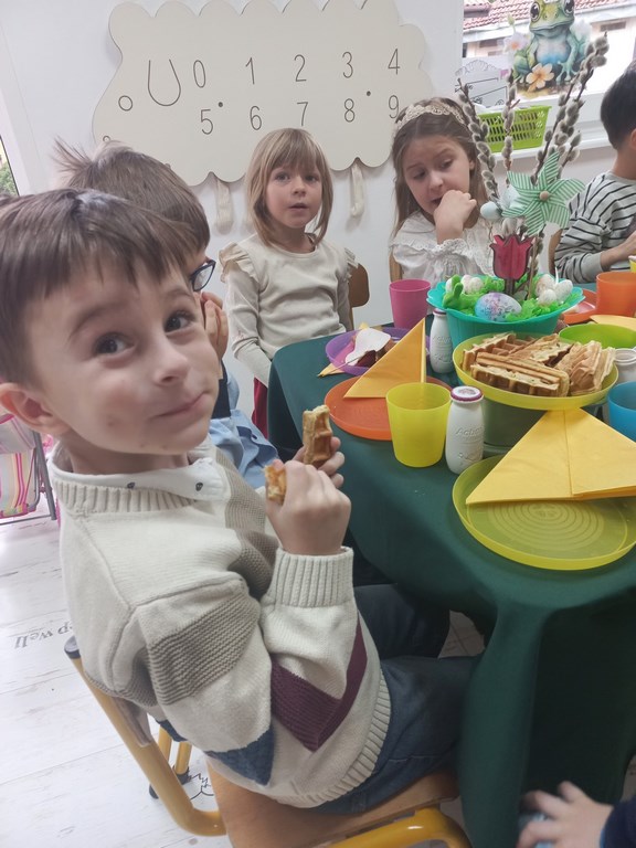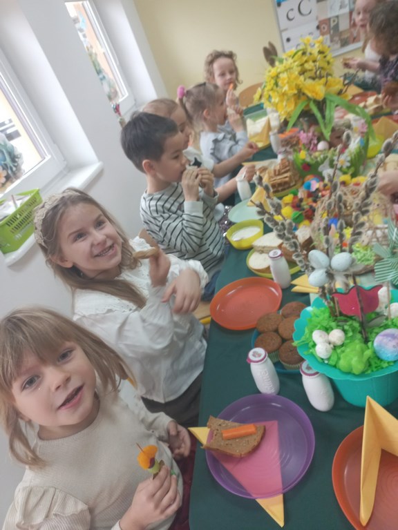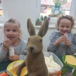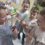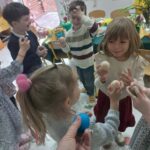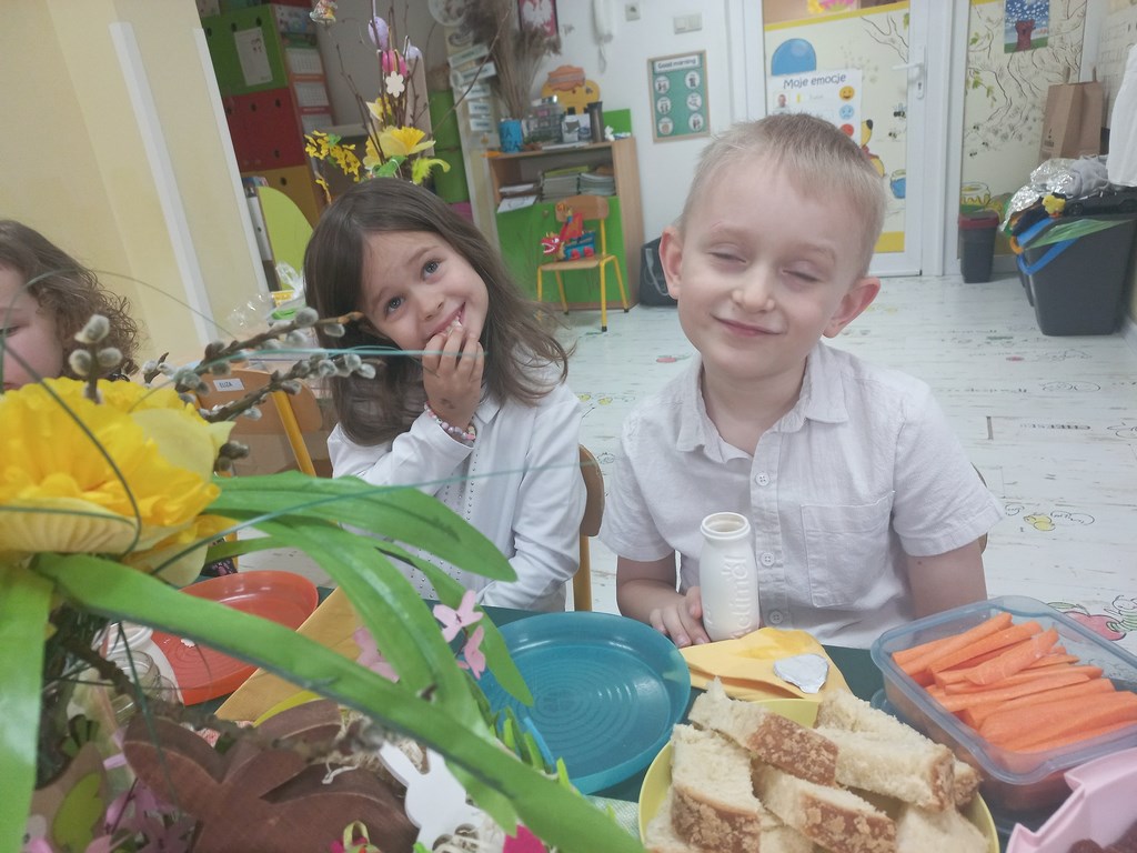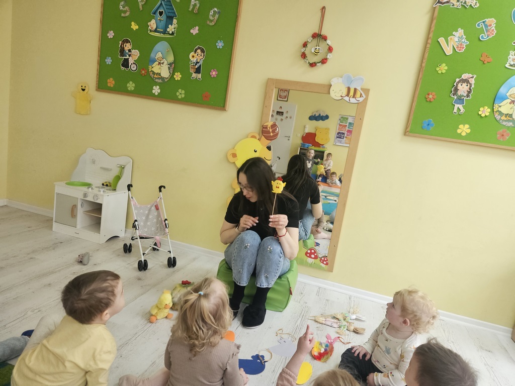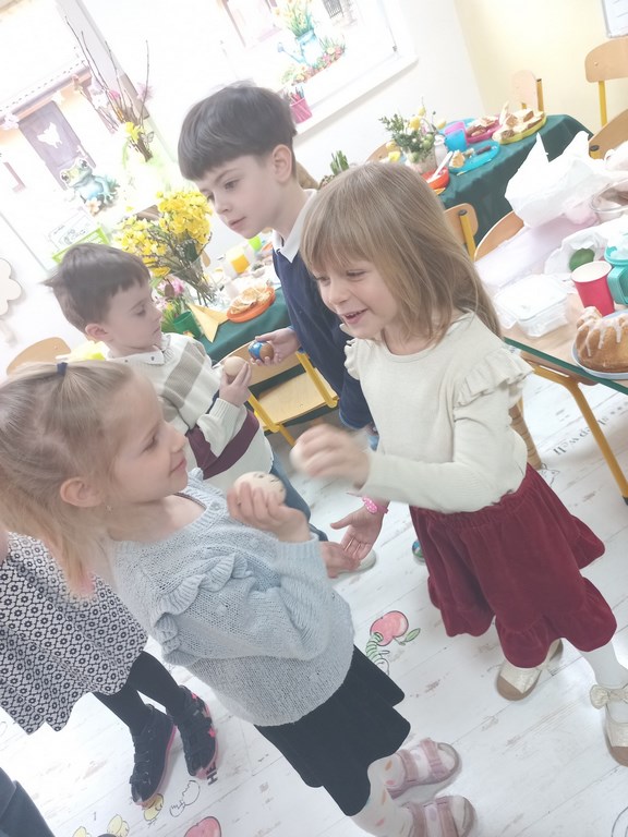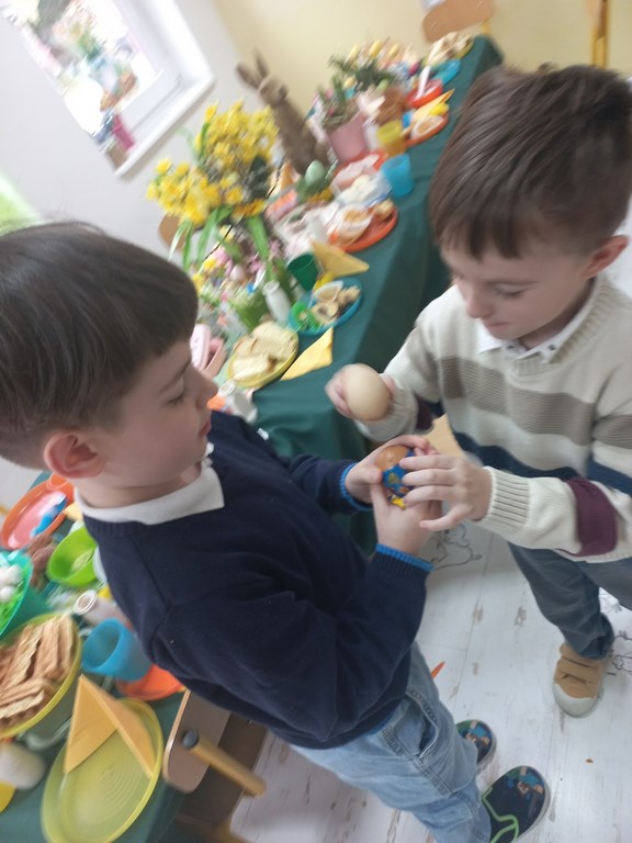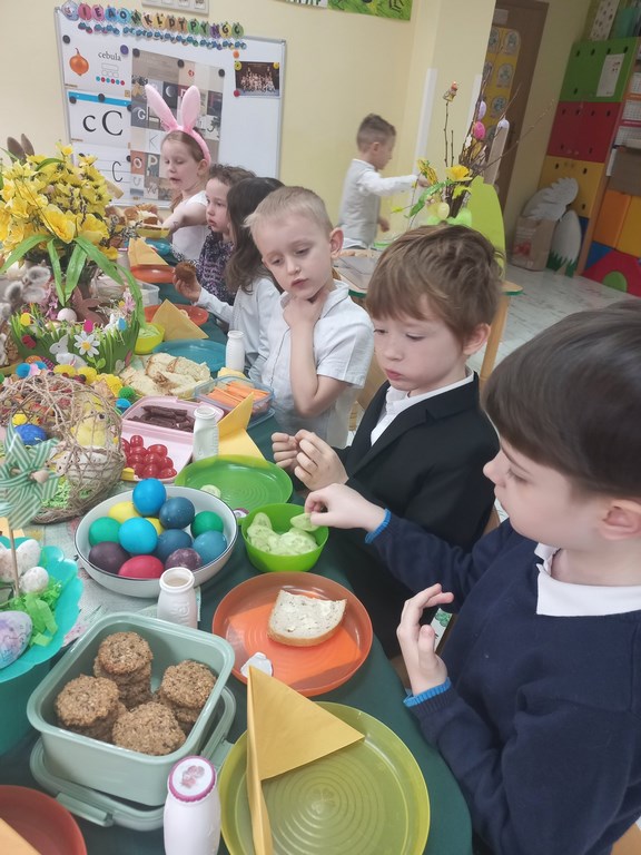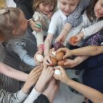 Ten tydzień na zajęciach z języka angielskiego u Naszych Pszczółek był tygodniem związanym z nadchodzącymi Świętami Wielkanocnymi. Rozmawialiśmy o symbolach wielkanocnych oraz o Wielkanocnych zwyczajach z różnych stron świata, Przygotowaliśmy również występ artystyczny dla Naszych Rodziców i bliskich z okazji Warsztatów Wielkanocnych. Happy Easter, Everyone! 🙂
