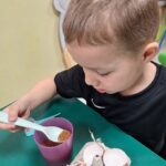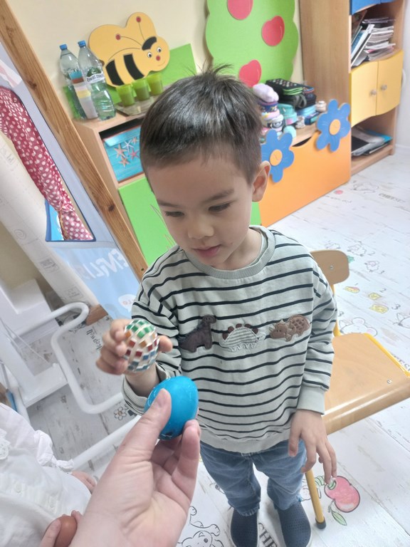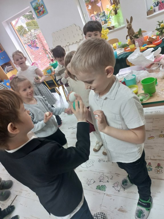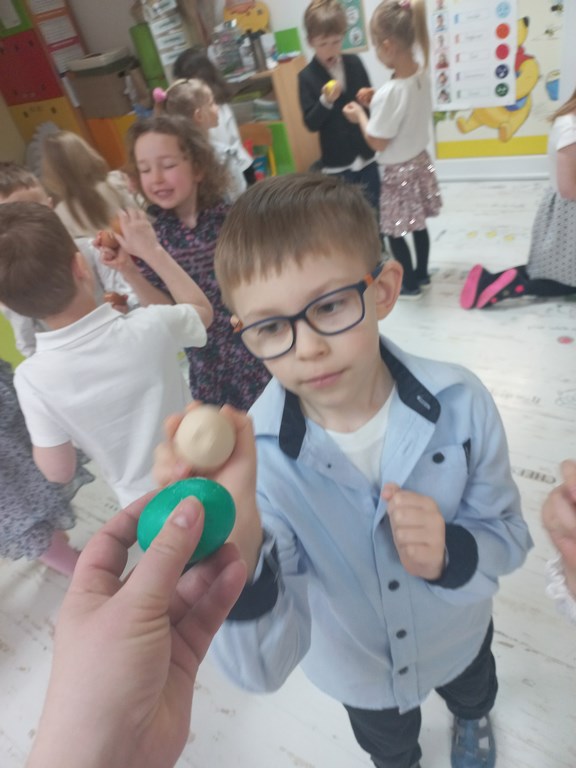 „Wielkanoc, Wielkanoc jajka malowane…”nasze żłobkowiaki z okazji zbliżających się Świąt Wielkanocnych na sensoplastyce wspólnie wykonały jajeczko wielkanocne. Zajęcia bardzo zintegrowały grupę.