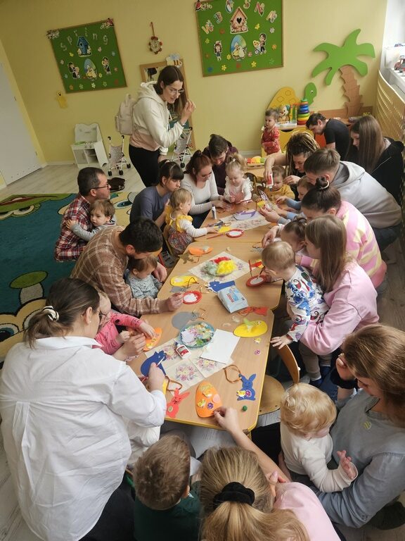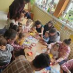 Warsztaty wielkanocne w przedszkolu z udziałem rodziców to wyjątkowa okazja do wspólnego spędzenia czasu i budowania relacji między dziećmi, opiekunami oraz nauczycielami. Podczas takich zajęć dzieci rozwijają swoją kreatywność, wykonując ozdoby świąteczne i poznając tradycje związane z Wielkanocą. Wspólna aktywność sprzyja integracji społeczności przedszkolnej oraz wzmacnia więzi rodzinne. Dziękujemy rodzicom za poświęcony czas i gratulujemy tak pięknie wykonanych stroików 😍