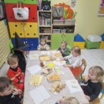 Czekając na Tłusty czwartek dzieci wykonywały różne pączkowe zadania.Uwieńczeniem święta  było poczęstowanie dzieci pączkami od koleżanki z grupy.Tygryski dziękują za słodki poczęstunek.