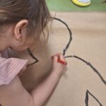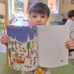 Dzieci przyniosły książki które lubią i okazało się, że dużo dzieci interesuje się budową człowieka – co ma w środku, jak jest zbudowany. W związku z tym wspólnie przy niewielkim udziale pani Tygryski stworzyły ” człowieka” odrysowując go od szkieletu. Następnie dorysowały mu oczy, nos, usta, paznokcie itp. Skupiły się nawet na kolanach człowieka,  któremu wspólnie nadały imię ” Sportuś”. Oprócz książek o anatomii człowieka znalazła się encyklopedia, oceany, media itp.