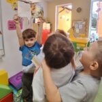 W tym tygodniu maluszki zapoznały się ze szczoteczką i pastą, a także z różnymi mydełkami. Zajęcia bardzo zintegrowały grupę, a szczególnie zabawa z wodą i różnymi pastami. Dzieci chętnie uczestniczyły w zajęciach.