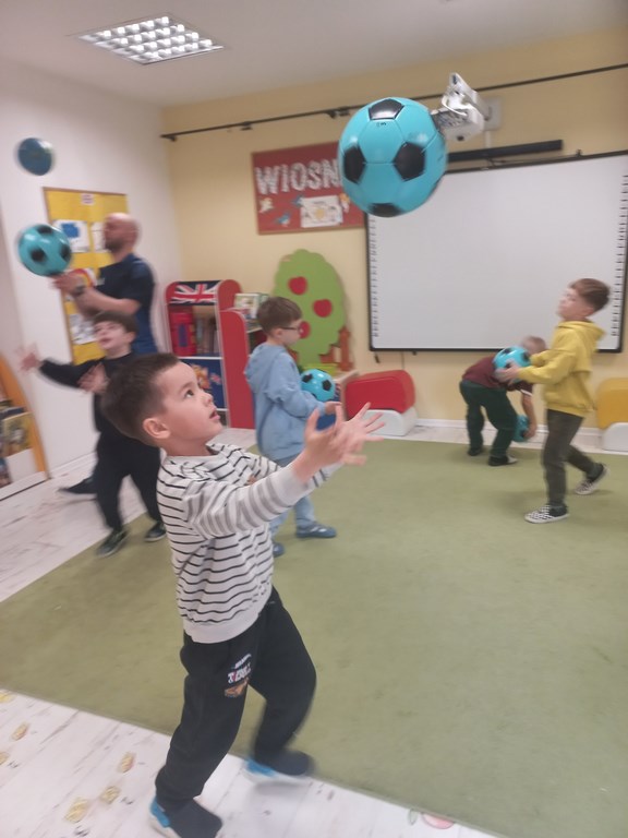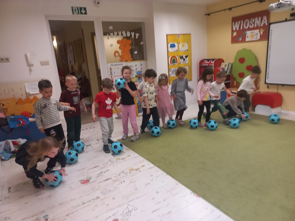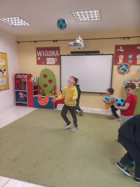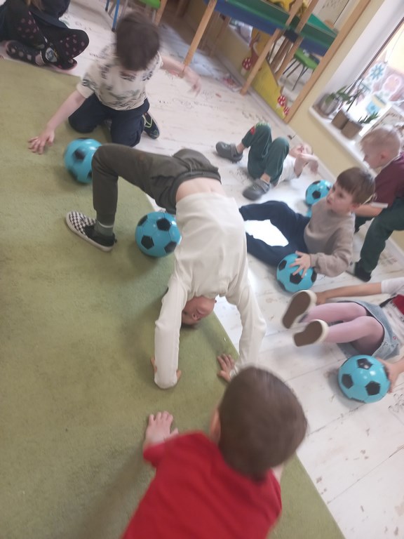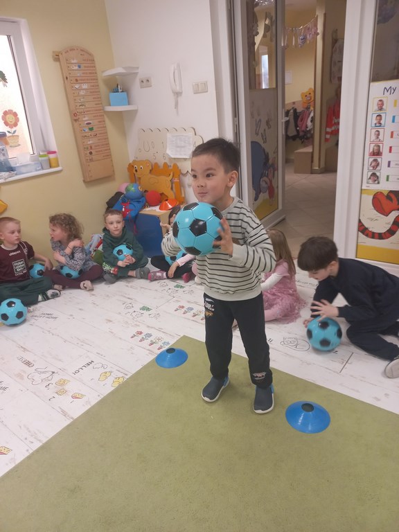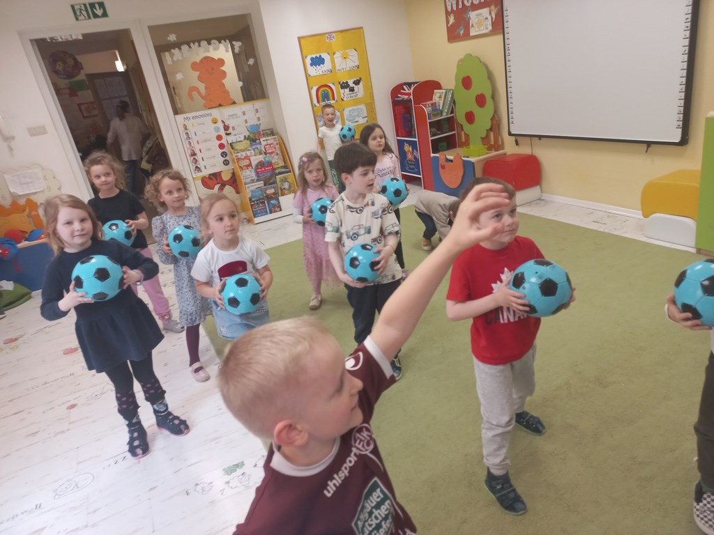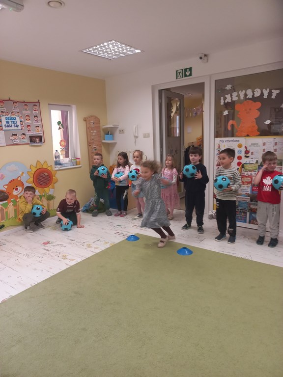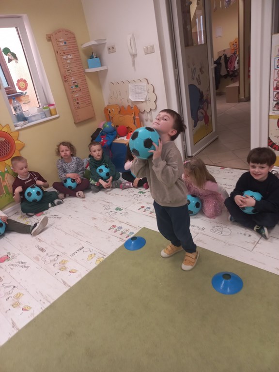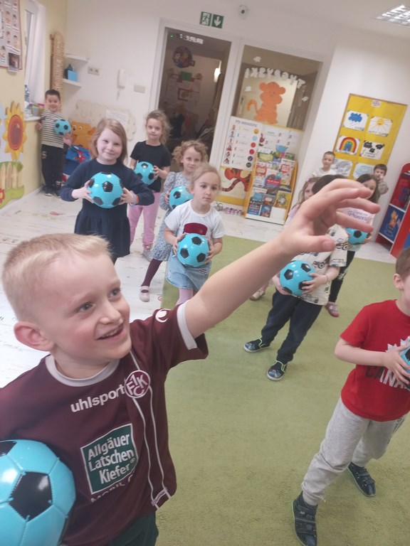Drużyna Kangura to grupa dzieci w przedszkolu, która bierze udział w zajęciach z piłką. Podczas spotkań dzieci uczą się podstawowych ruchów, takich jak rzucanie, łapanie i kopanie piłki. Zajęcia są pełne zabawy i pomagają rozwijać sprawność fizyczną oraz współpracę w grupie. Dzieci chętnie uczestniczą w tych ćwiczeniach i cieszą się wspólną aktywnością.