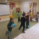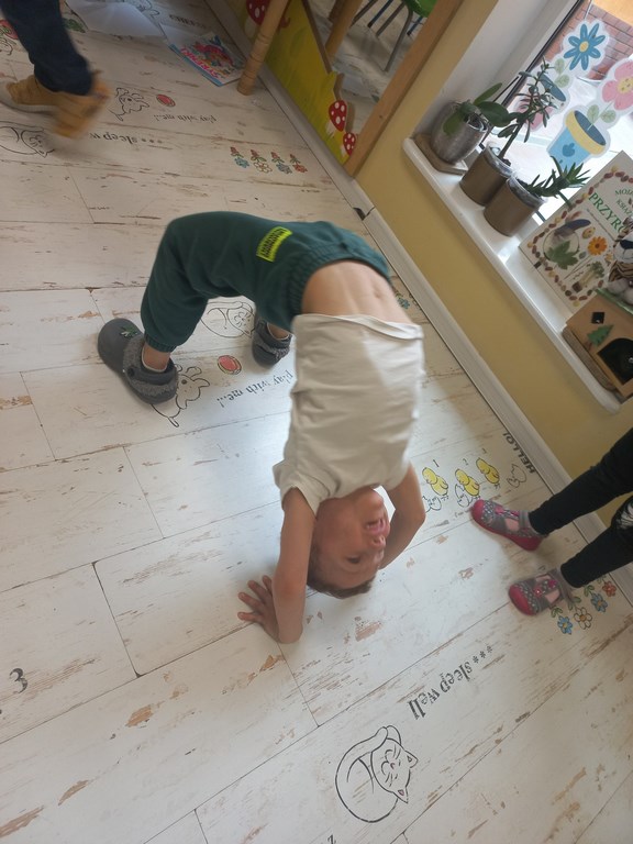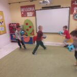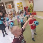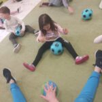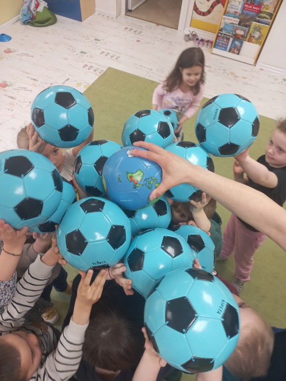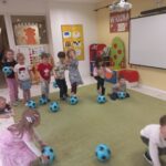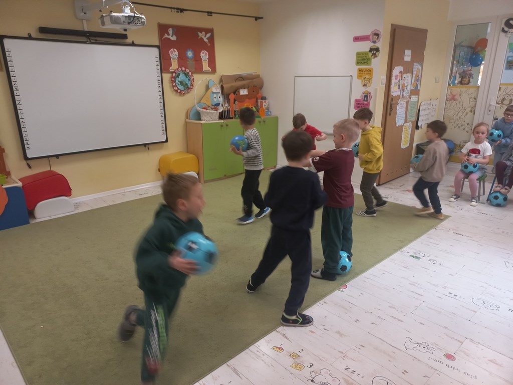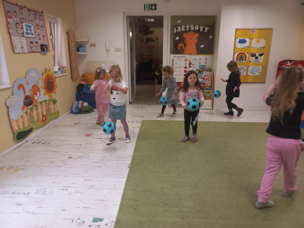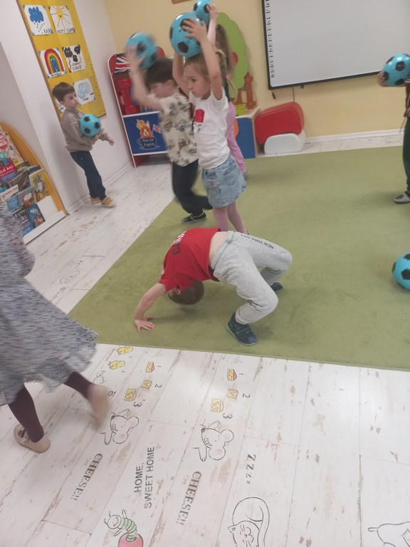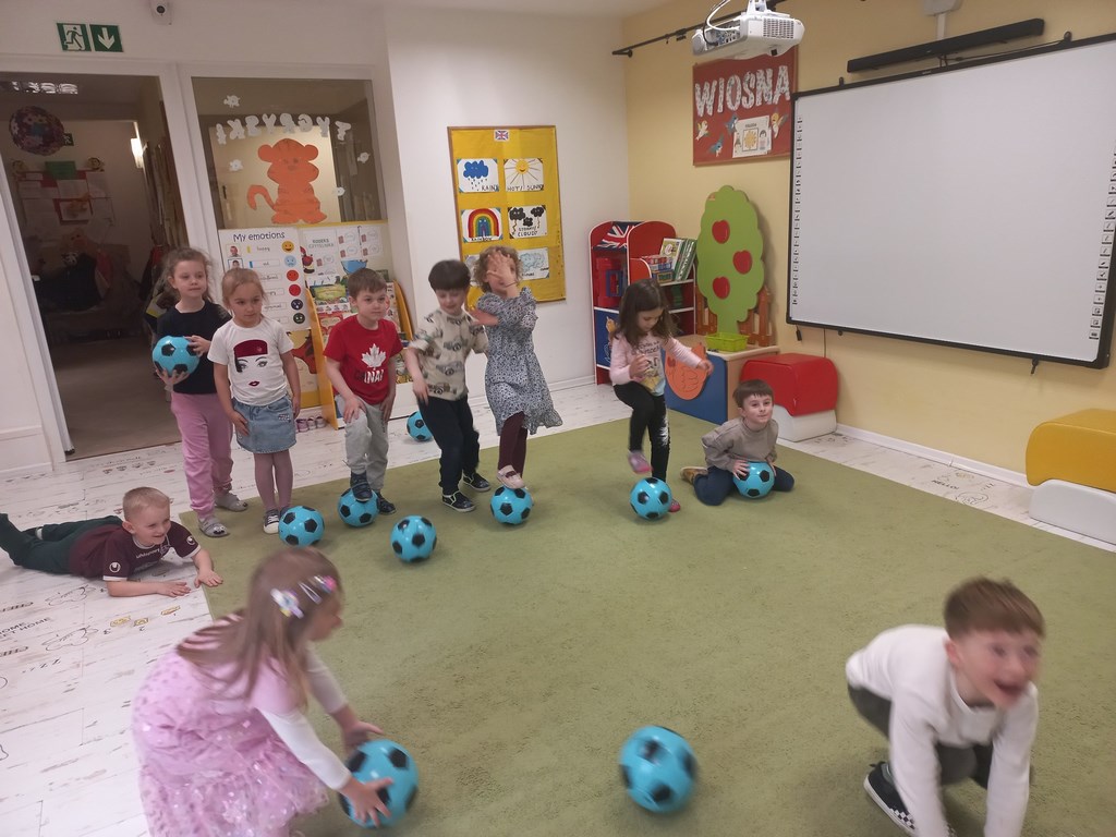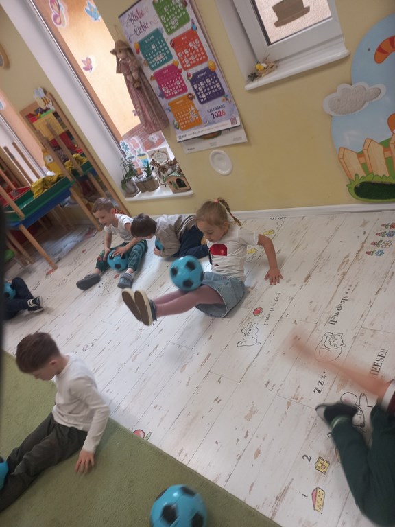 Drużyna Kangura to grupa dzieci w przedszkolu, która bierze udział w zajęciach z piłką. Podczas spotkań dzieci uczą się podstawowych ruchów, takich jak rzucanie, łapanie i kopanie piłki. Zajęcia są pełne zabawy i pomagają rozwijać sprawność fizyczną oraz współpracę w grupie. Dzieci chętnie uczestniczą w tych ćwiczeniach i cieszą się wspólną aktywnością.