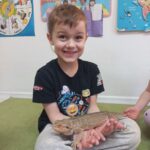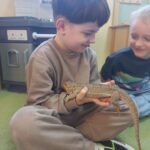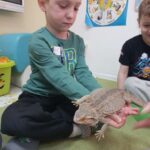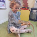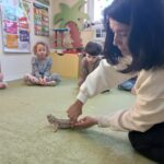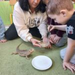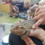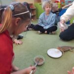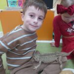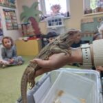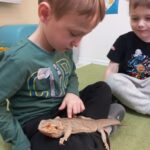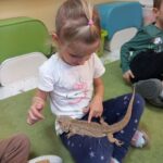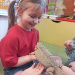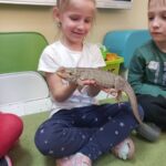 W naszym przedszkolu miało miejsce niezwykłe spotkanie z agamą brodatą. Przedszkolaki wykazały się ogromnym zainteresowaniem, ale jednocześnie były bardzo spokojne, delikatne i uważne w kontakcie ze zwierzątkiem. Z wielką uwagą słuchały ciekawostek i  przestrzegały wszystkich zasad bezpieczeństwa. Dziękujemy Filipkowi i mamie za tą cudowną przygodę ❤️ Wizyta sprawiła wiele emocji i radości, a także była cenną lekcją przyrody w praktyce.