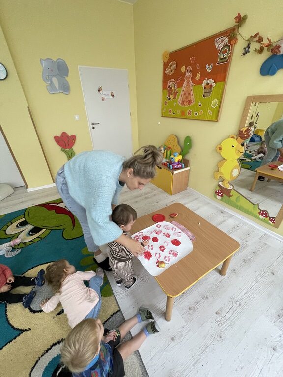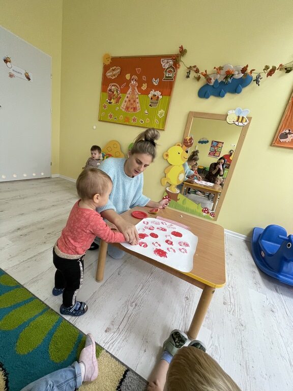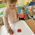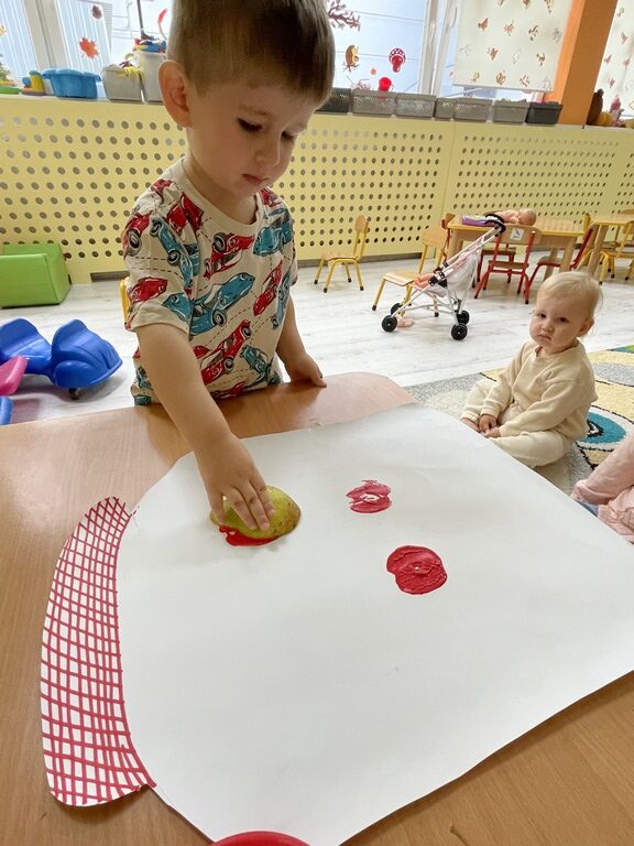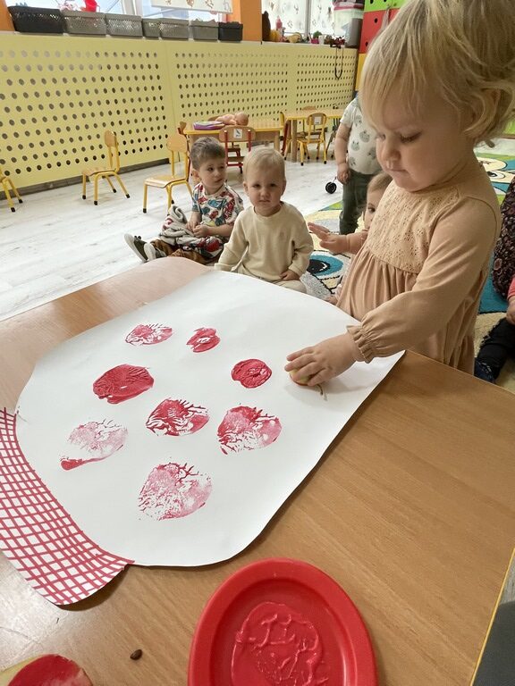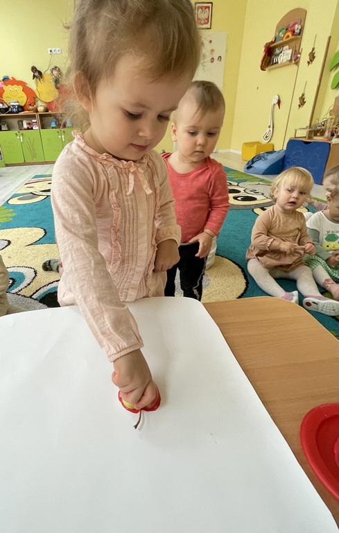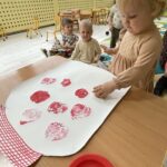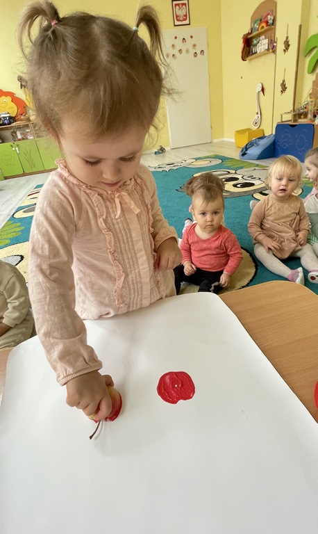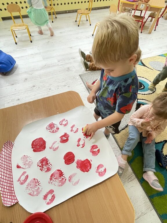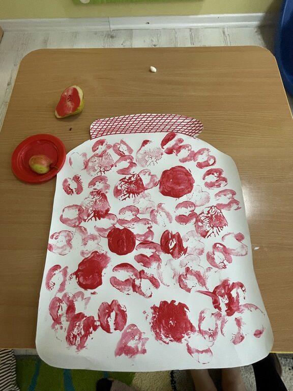 🍎 W ostatnich dniach rozmawialiśmy też o kompotach i konfiturach, a dzieci wykonały piękne jesienne prace plastyczne na papierowym słoiku odciskały w farbie jabłka i gruszki. Dzięki temu ćwiczyły zdolności manualne i poznawały jesienne owoce.