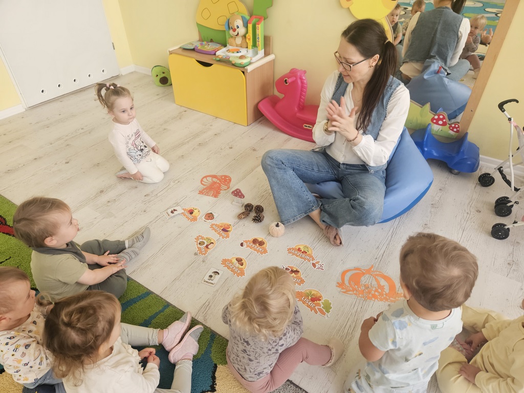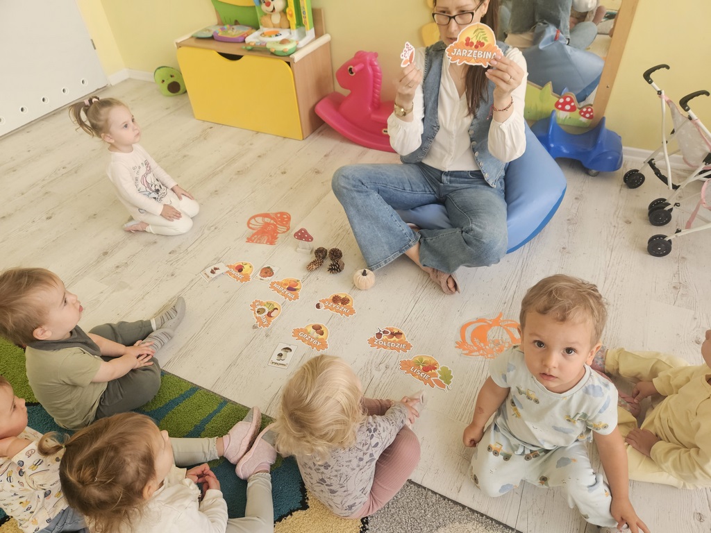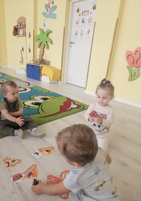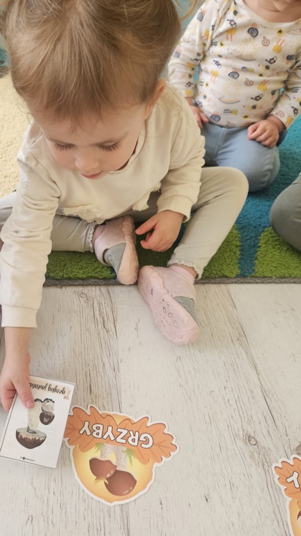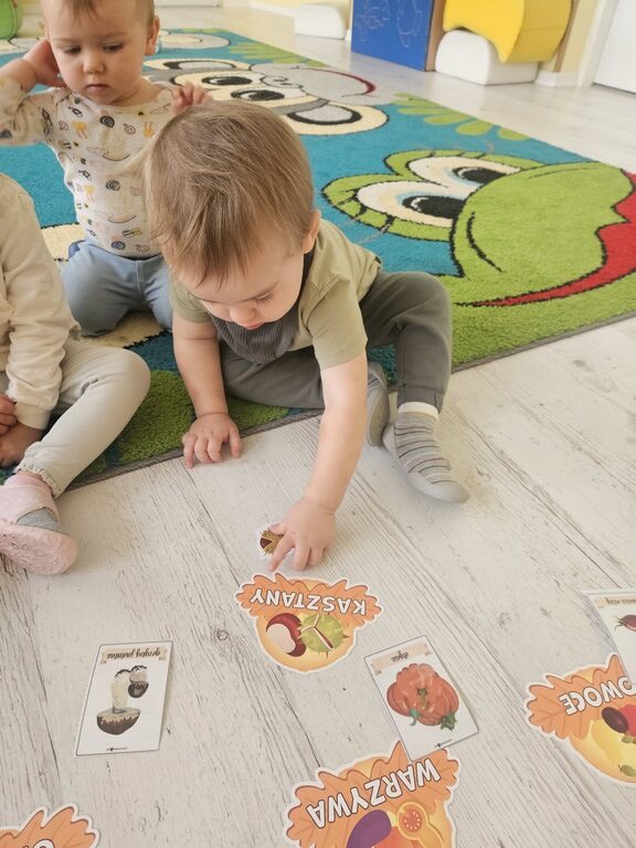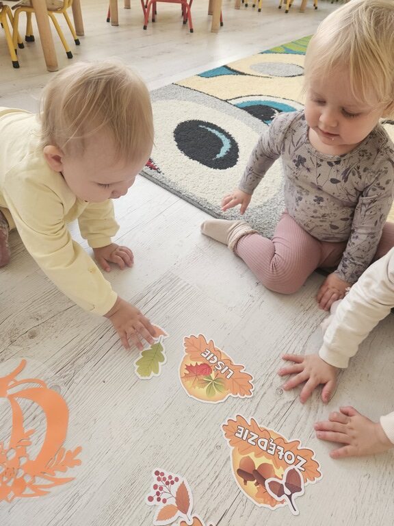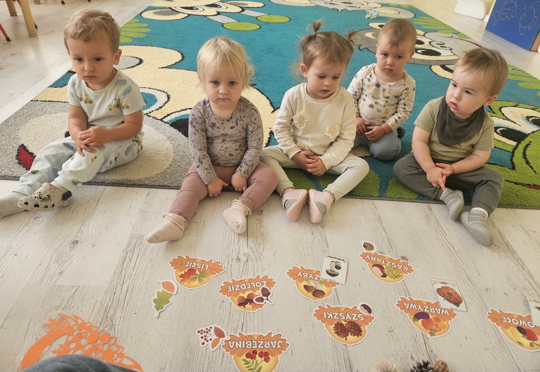„Kasztany, żołędzie i szyszki znajdują się u naszej kolorowej i złotowłosej Pani Jesień. „Dziś Bumbelbee poznały dary jesieni: kasztany, jarzębiny,orzechy, z pomocą cioci maluszki dopasowywały odpowiednie pomoce do ilustracji. Zajęcia bardzo skupiły uwagę dzieci,chętnie wykonały pracę. Odwiedzajcym galerię życzymy miłego dnia.