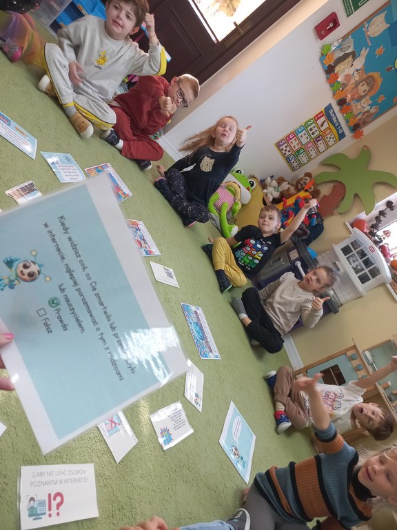 ✔️ że komputer to narzędzie do nauki i zabawy – ale z umiarem! ⏳🎮📚 i wiele wiele innych ciekawostek 😉 A na koniec zabawa ruchowa z ” siecią internetową” 😁