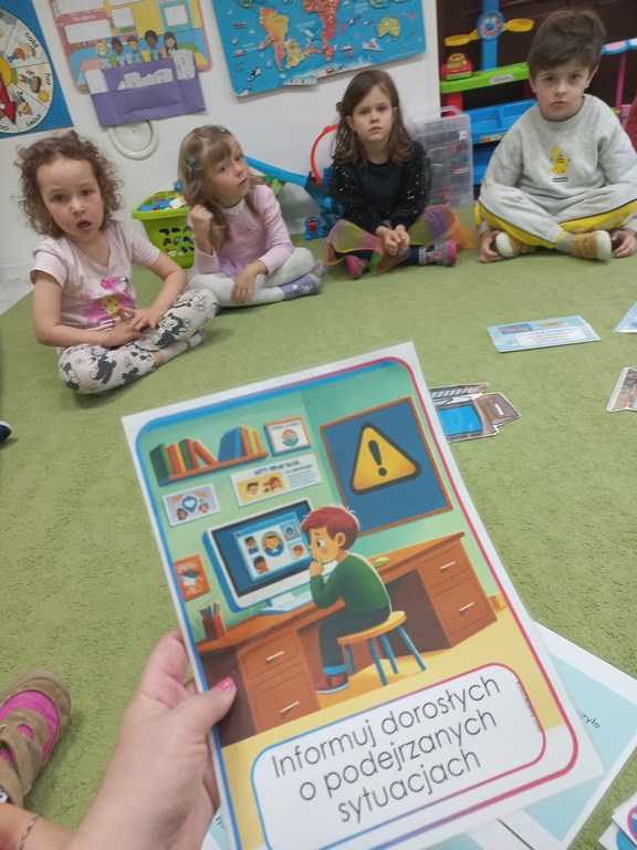 W naszym przedszkolu rozmawialiśmy z dziećmi o tym, jak bezpiecznie korzystać z komputera . 📱💻
