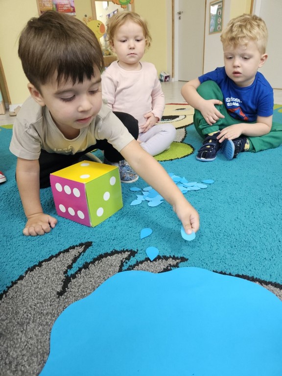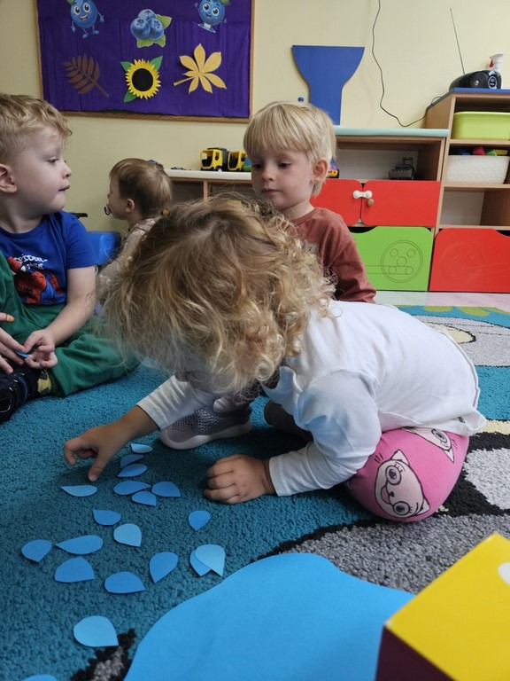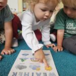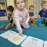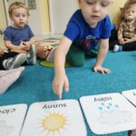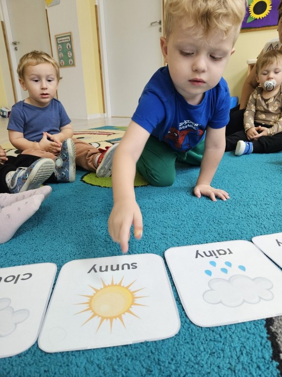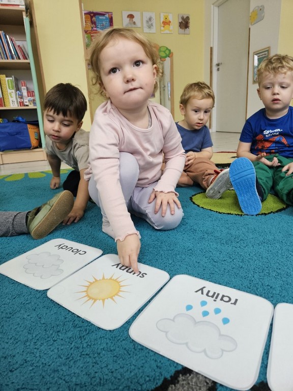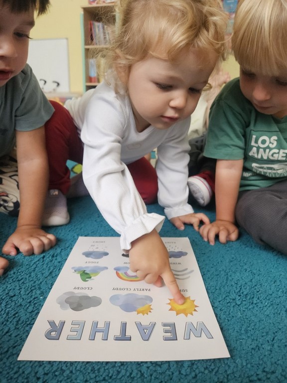 Podczas zajęć języka angielskiego Jagódki poznały słownictwo związane z pogodą. Zabawy matematyczne i pamięciowe pomogły utrwalić poznane słownictwo oraz rozwijać umiejętność liczenia.