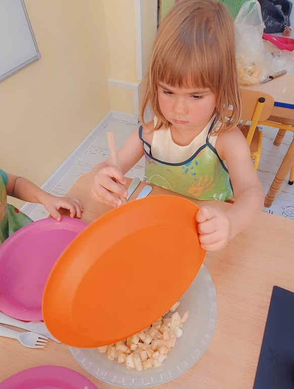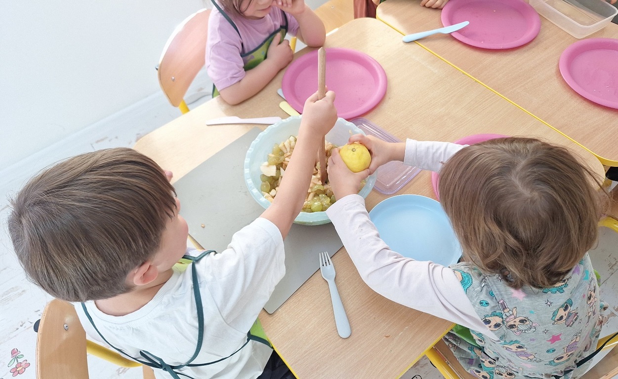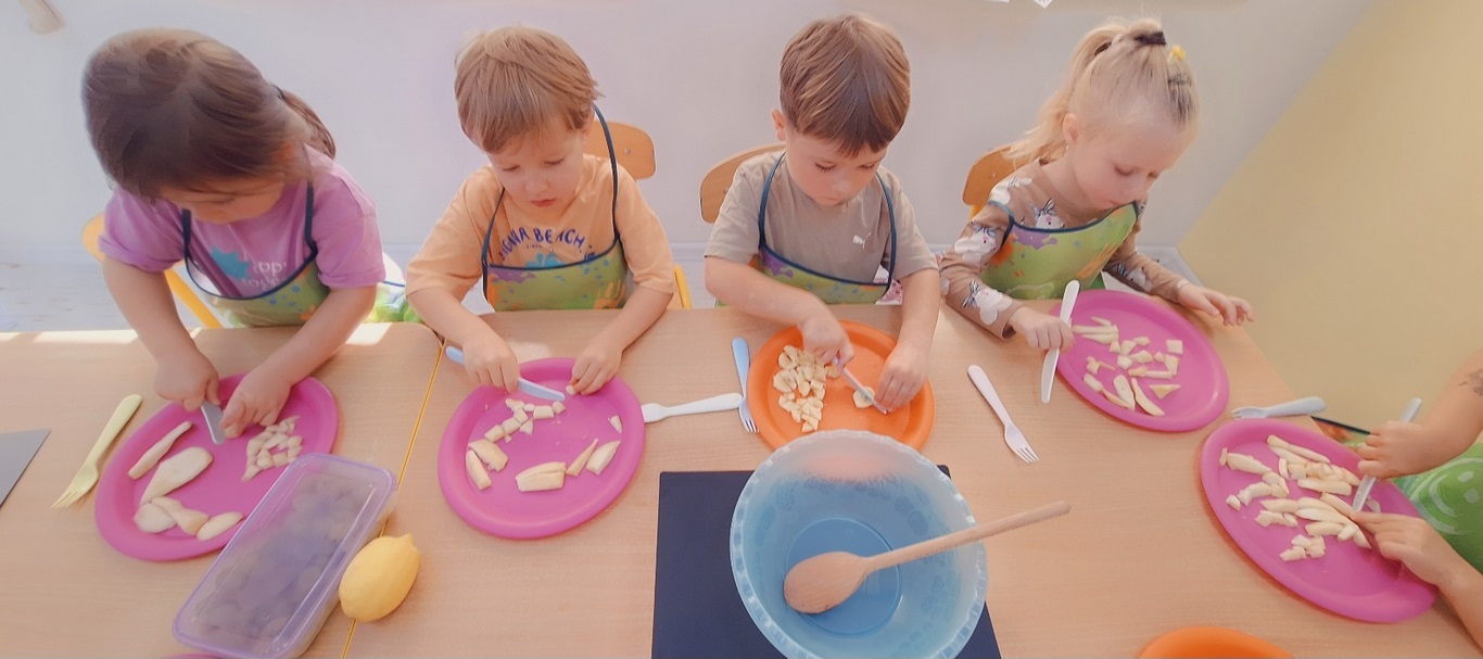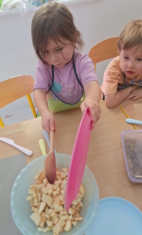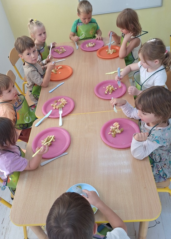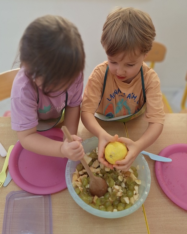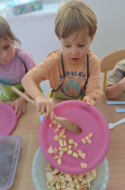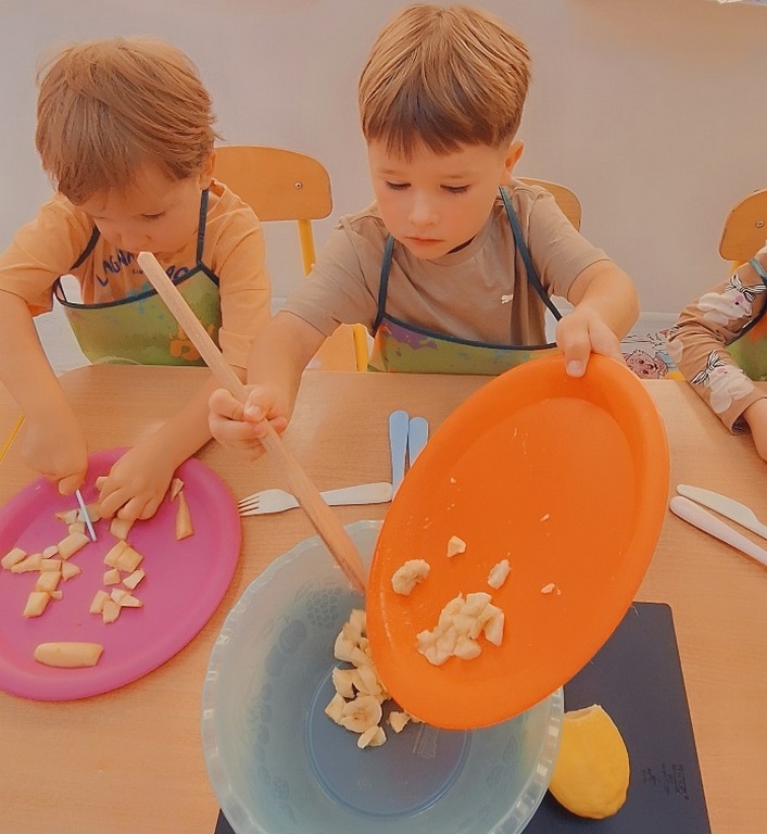 Tygryski kroiły owoce, z których wyszła  sałatka owocowa. Dzieci doprawiły sałatkę zdrową cytryną.Sałatka wykonana samodzielnie została cała zjedzona, a smakowała dzieciom przepysznie.