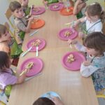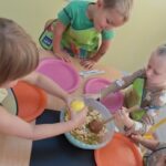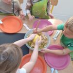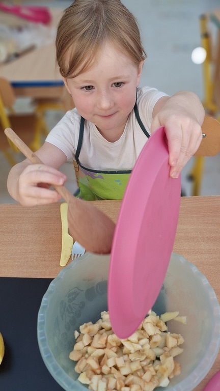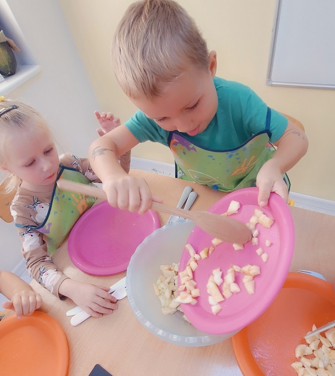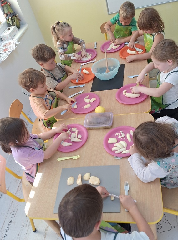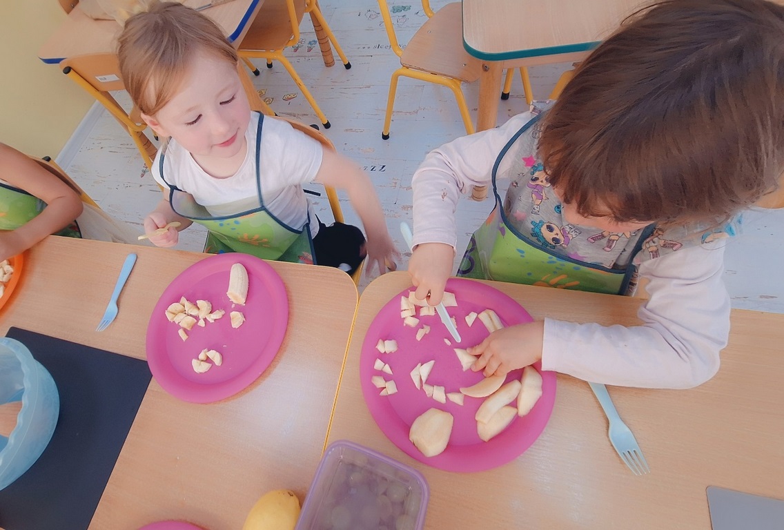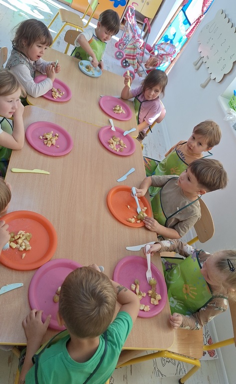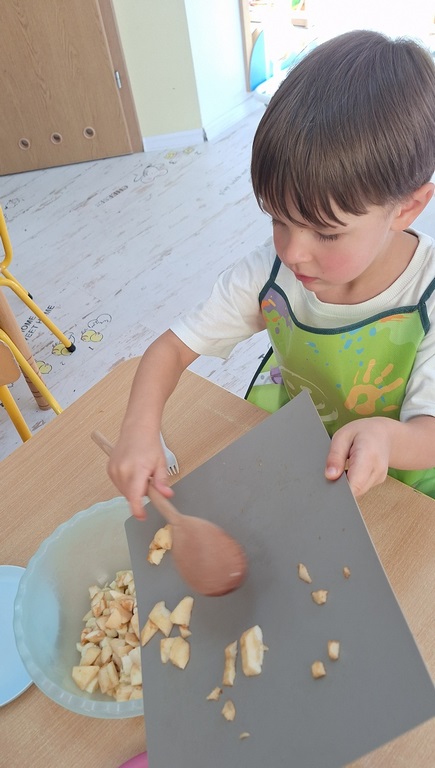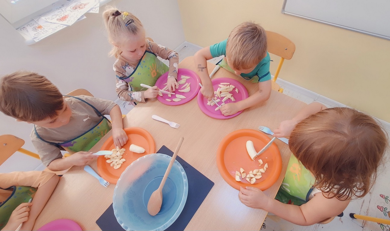 Tygryski kroiły owoce, z których wyszła  sałatka owocowa. Dzieci doprawiły sałatkę zdrową cytryną.Sałatka wykonana samodzielnie została cała zjedzona, a smakowała dzieciom przepysznie.