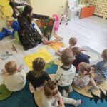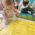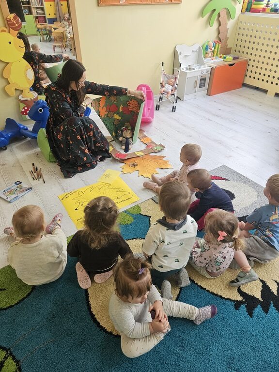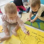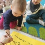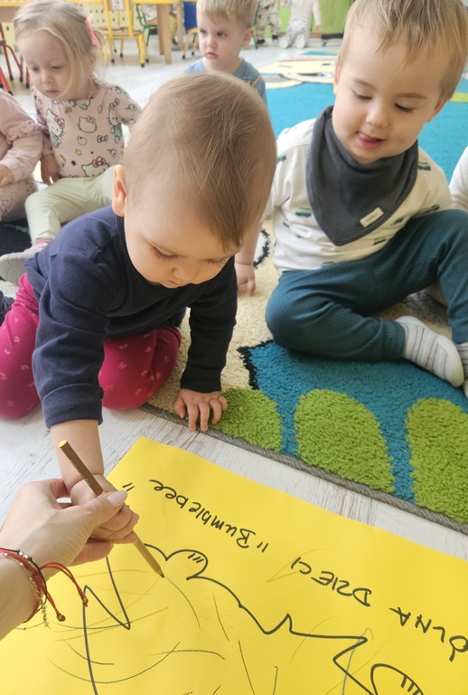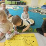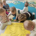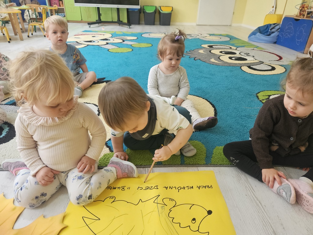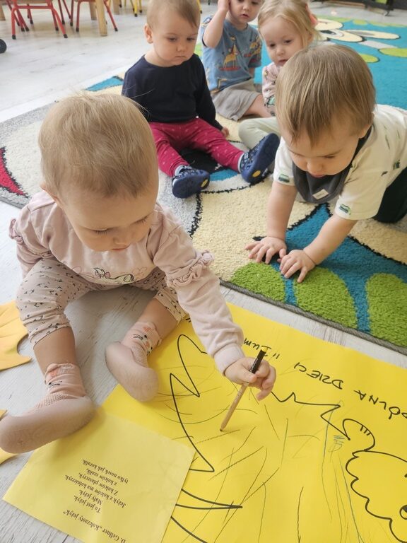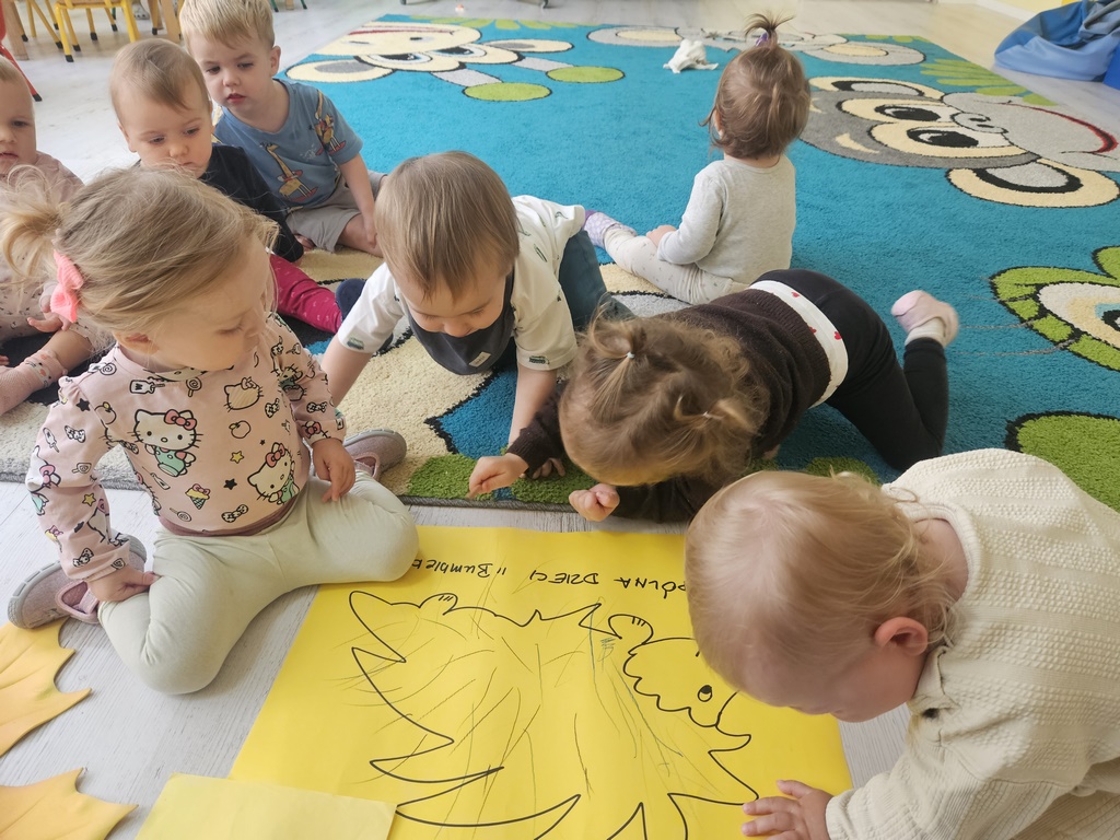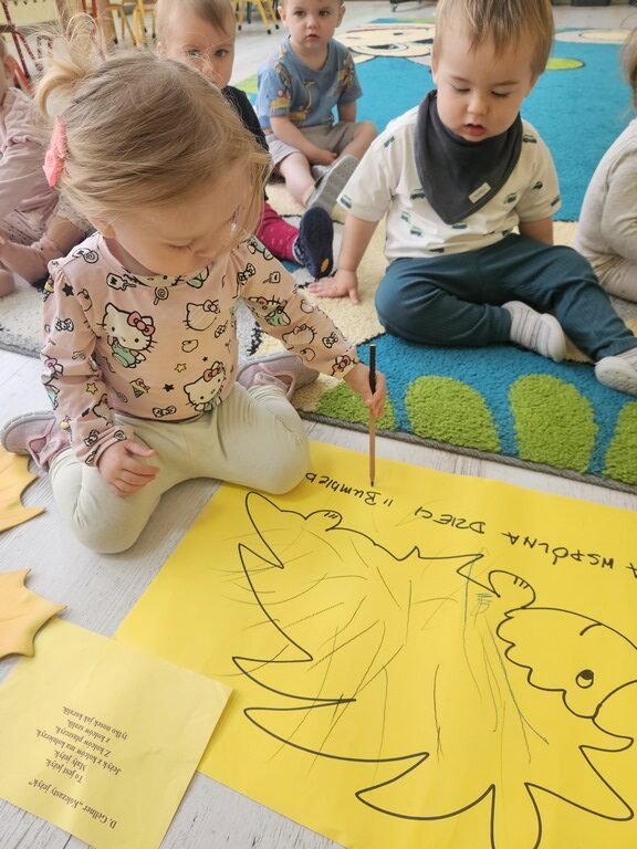 Nasi milusińscy po raz pierwszy w semestrze rozpoczeli projekt sensoryczno- plastyczny,który w każdy poniedziałek będzie realizowany raz w tygodniu, miesiąc październik:JESIEŃ. Dziś maluszki ćwiczyły motorykę małą- chwyt trzymania kredki podczas rysowania kolców jeżykowi. Praca wspólna bardzo spodobała się dzieciom.