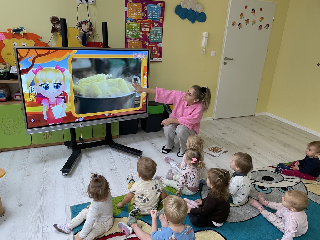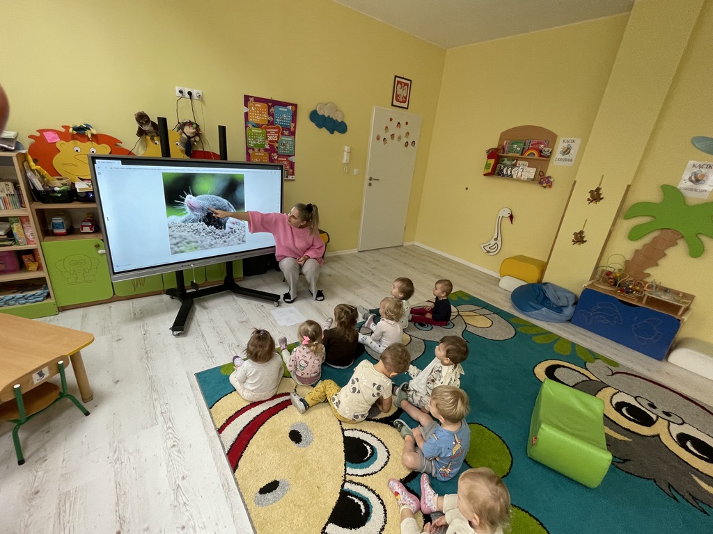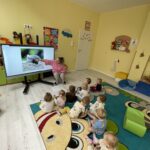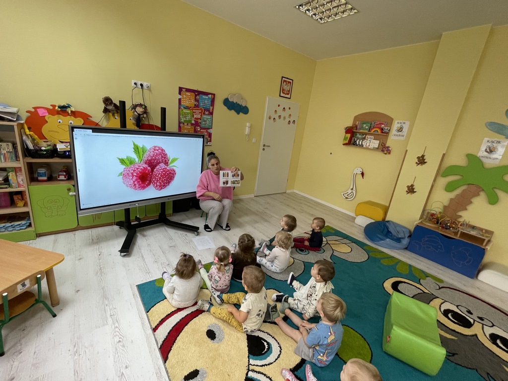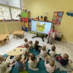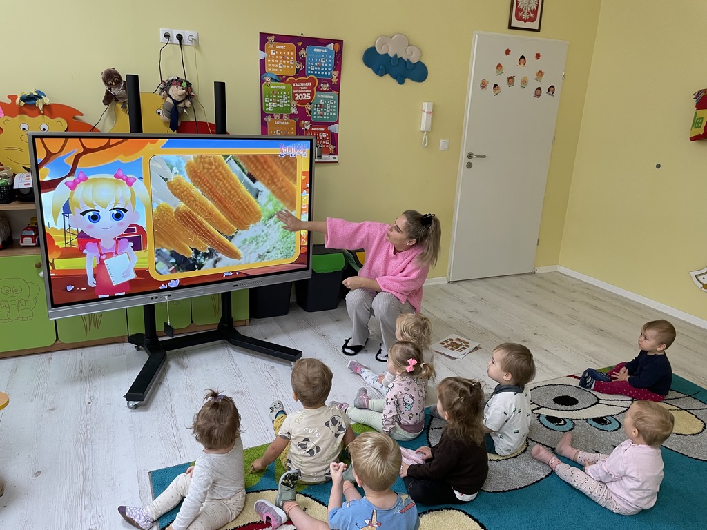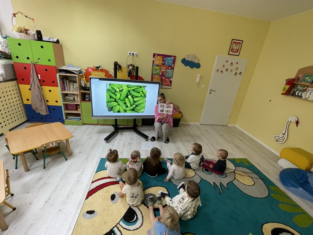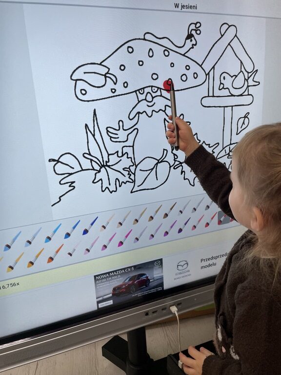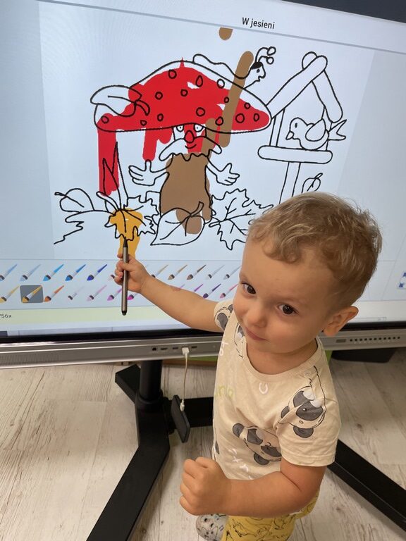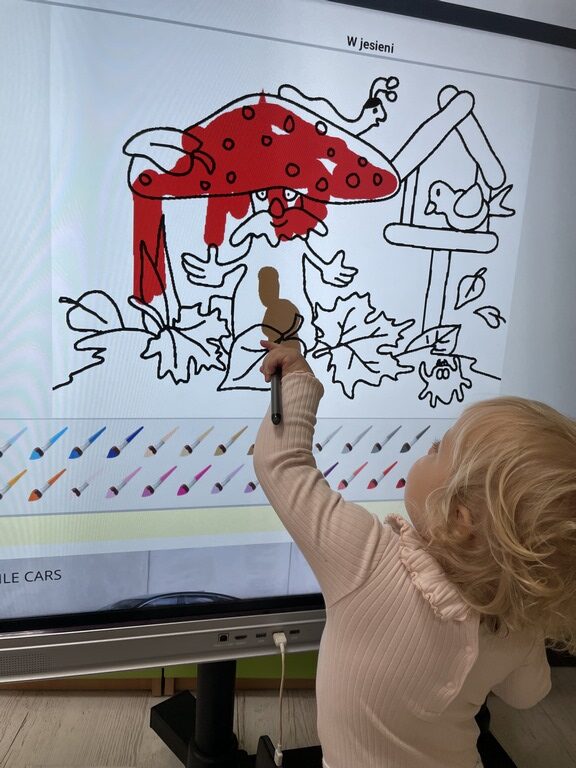Dziś w naszej grupie korzystaliśmy z tablicy interaktywnej TIK, która pomogła nam odkrywać świat przyrody! 🌳🐞Dowiedzieliśmy się, jakie zwierzęta można spotkać w ogrodzie, jak wyglądają i dlaczego są pożyteczne. Rozmawialiśmy też o tym, co można przygotować z owoców i warzyw poznaliśmy m.in. konfitury 🍓 oraz warzywa i rośliny, które możemy samodzielnie zasadzić w ogrodzie 🌱. Dzieci z radością kolorowały muchomora na tablicy interaktywnej, a na zakończenie zajęć wykonały pracę plastyczną malowanie pomidora farbami 🎨🍅